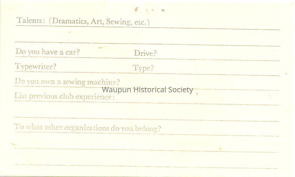 Wisconsin Jaycettes Membership cardEntry/Object ID