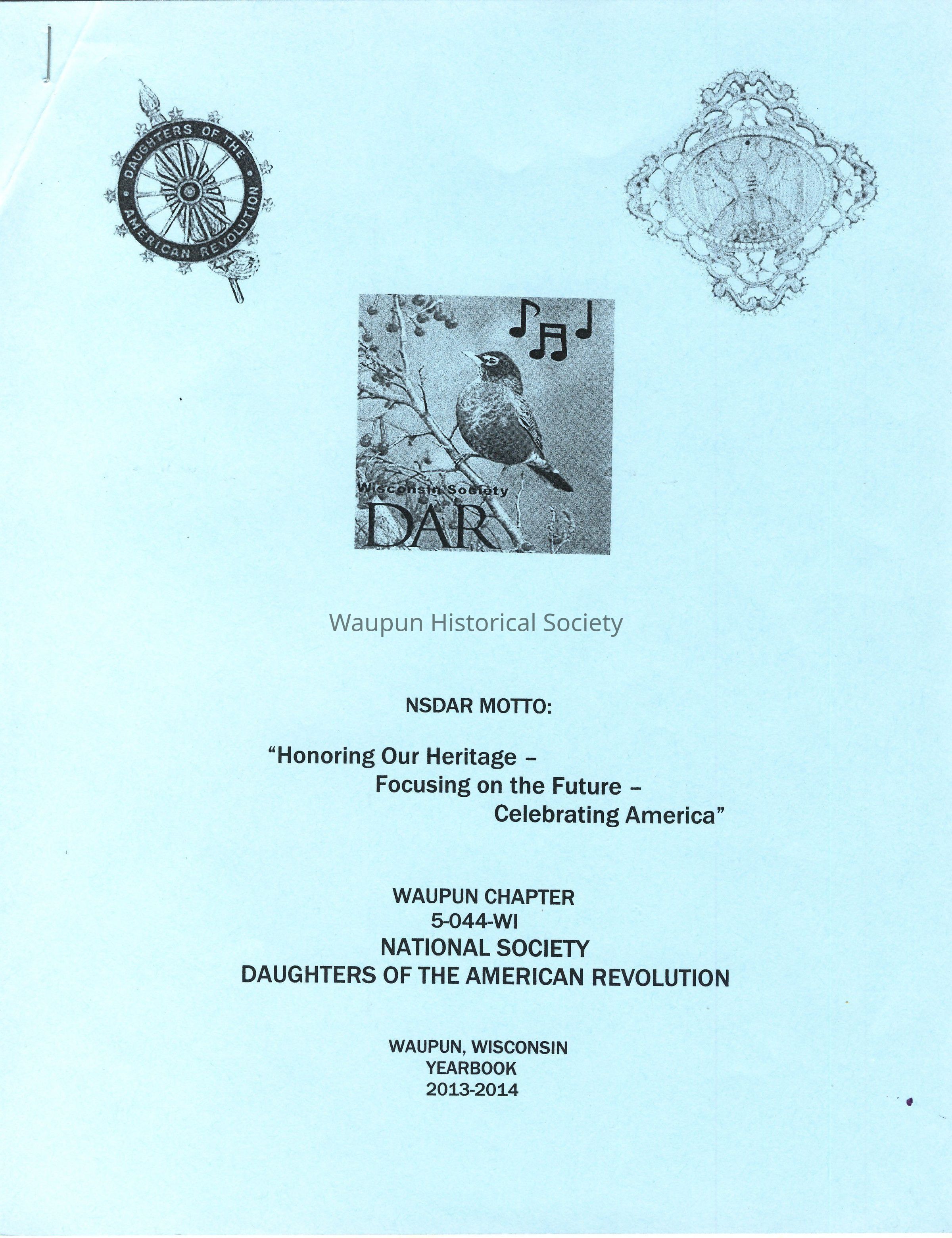 WAUPUN CHAPTER 5-044-WI - NATIONAL SOCIETY - DAUGHTERS OF THE AMERICAN REVOLUTION - WAUPUN, WISCONSIN - YEARBOOK, 2013-2014