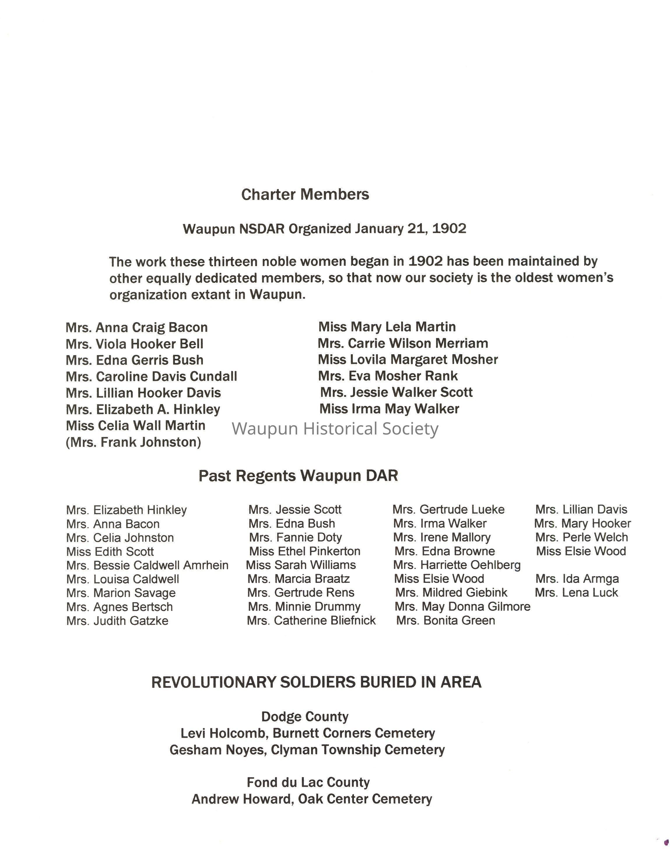 Past Regents Waupun DAR