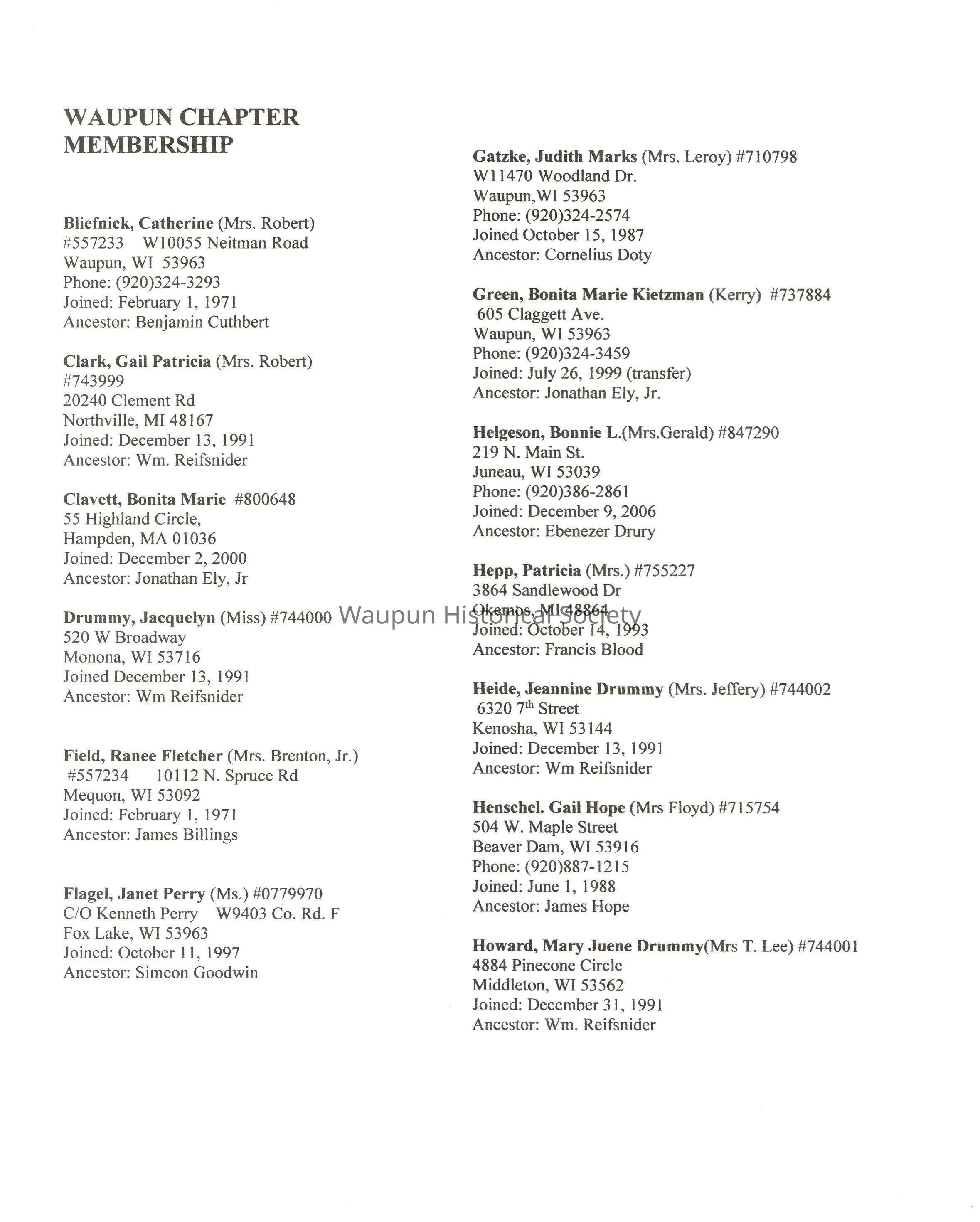 Wisconsin Society DAR Waupun ChapterEntry/Object ID