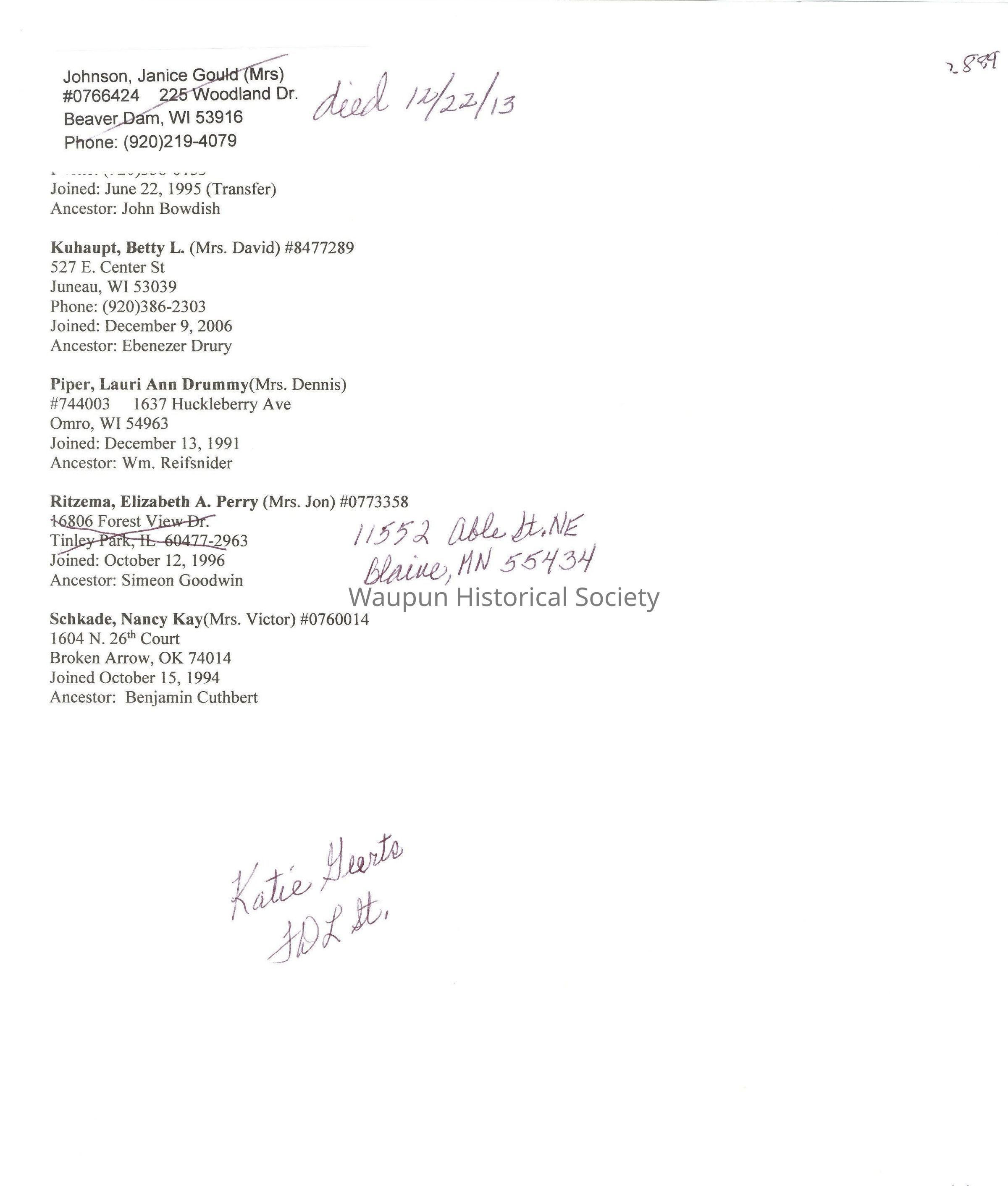 Secretary: Betty Kuhaupt Historian: