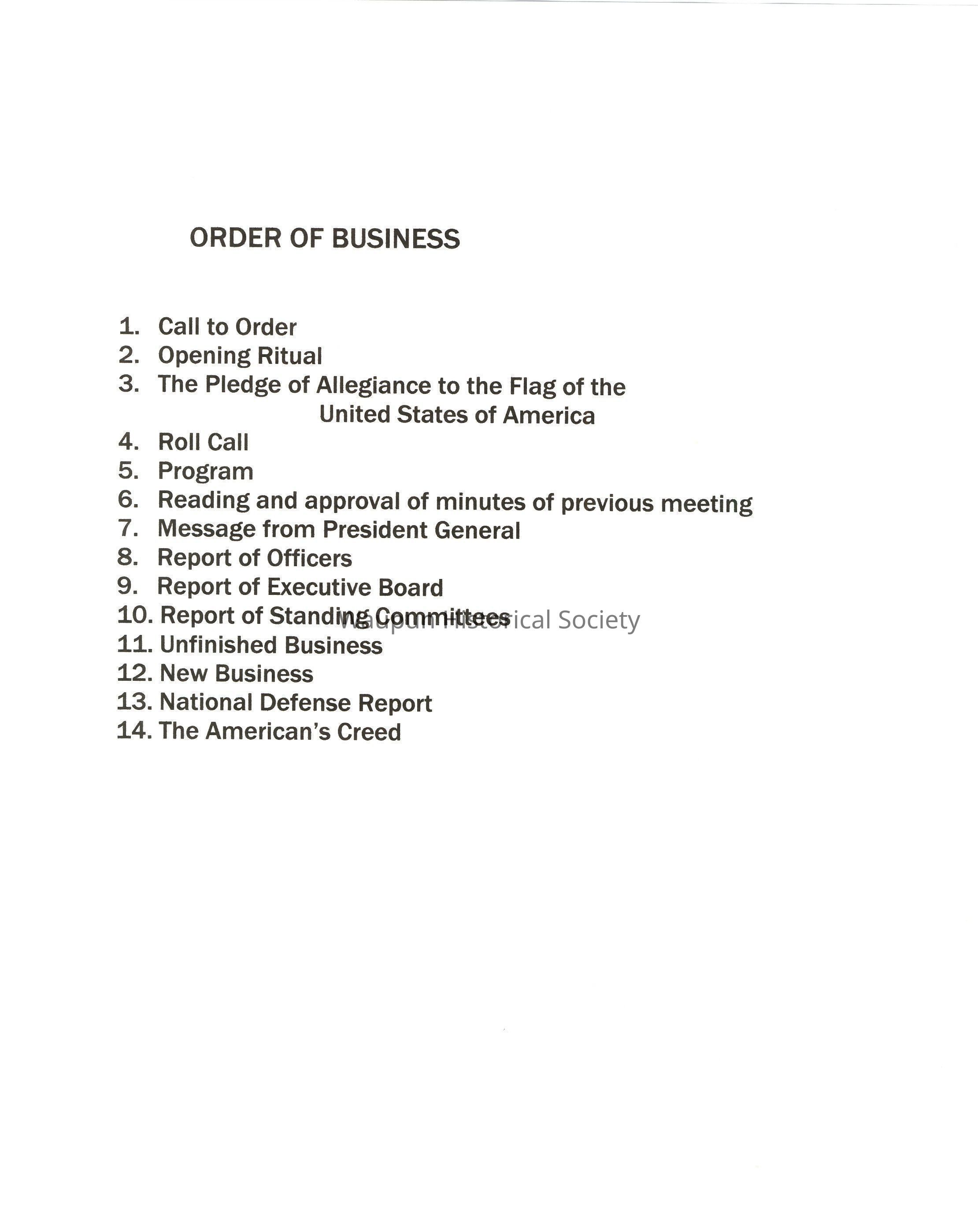ORDER OF BUSINESS