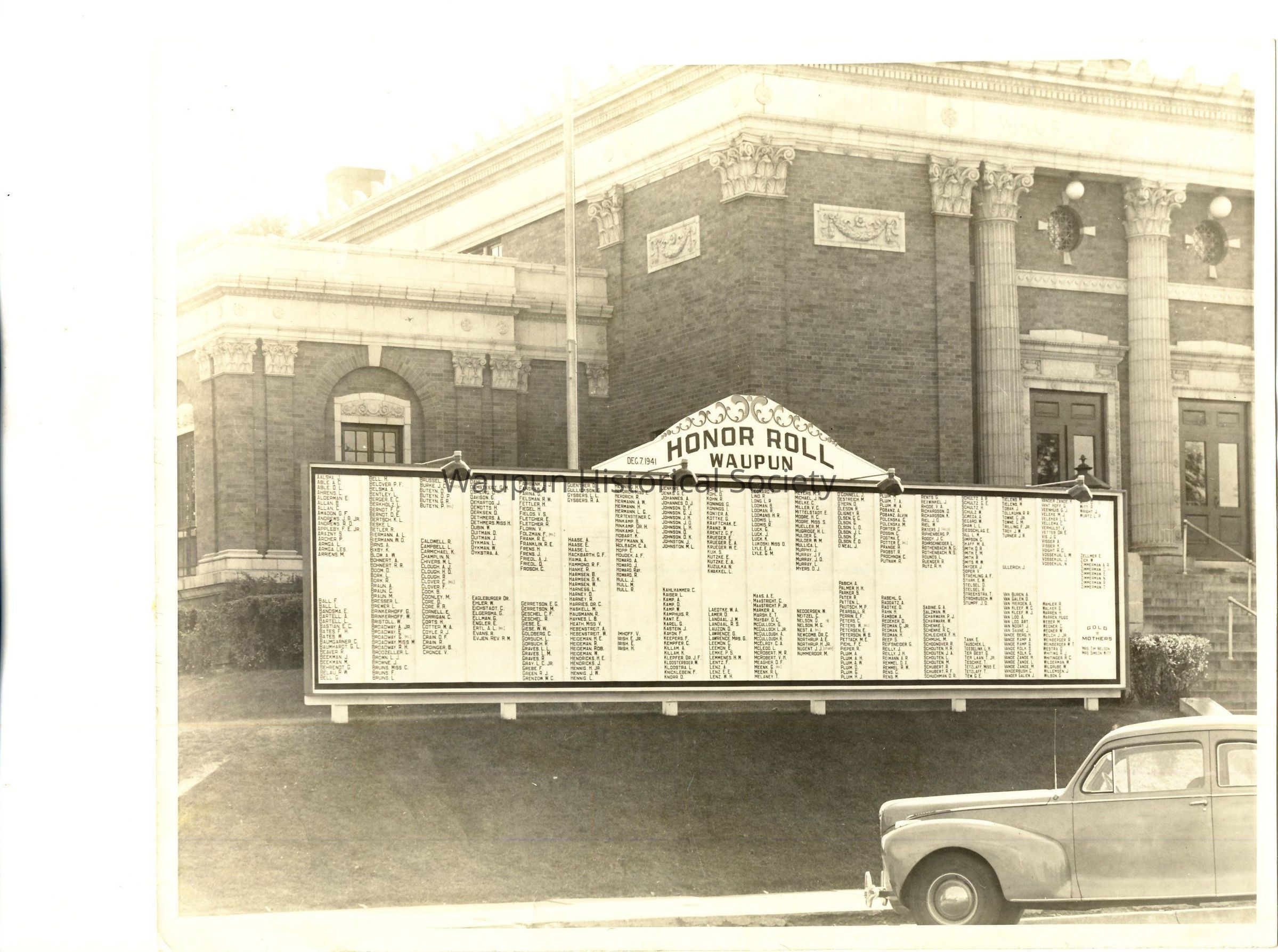 Photo of the World War II Honor Roll dated Dec. 7, 1941. Photo taken on front lawn of City Hall, Waupun, WI. This was donated by Mr. Nicholas (Nick) Stoffel of Fond du Lac, WI.Acquisition