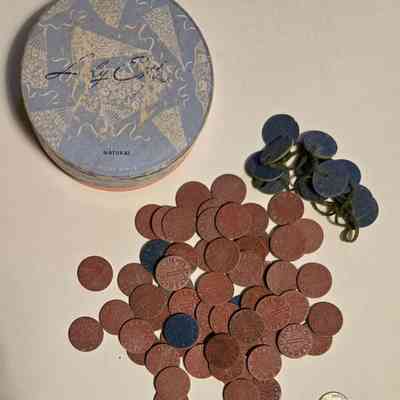 Also have a powder box with numerous tokens of same. They were found in collection. From research, these are known as silvertax tokens.Acquisition