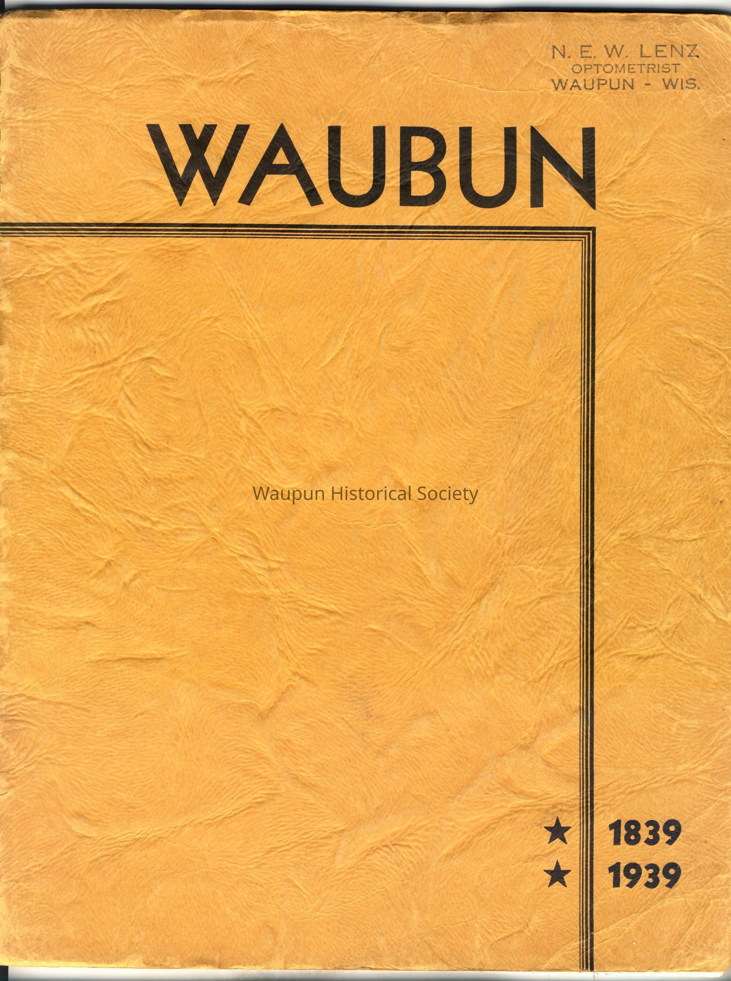 2 copies were donated from Michael Wendt's mother, Geraldine Hasenfus. One has the name N. E. W. Lenz, Optometrist, Waupun, WIS. in upper right corner.Acquisition