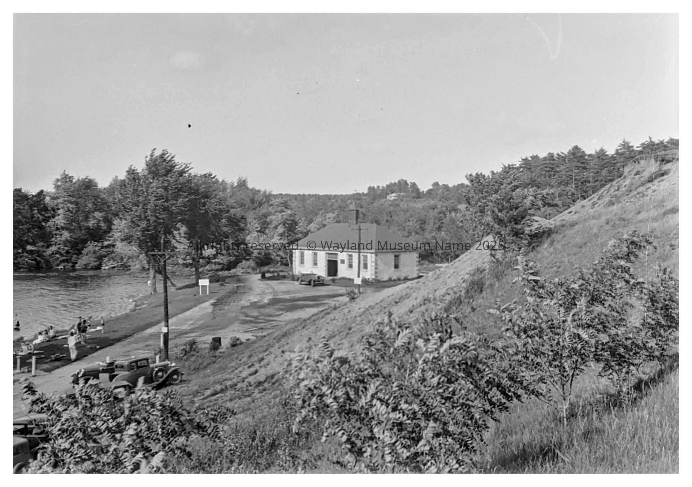 Folsom, Wallace Herbert, (1884 - 1954) –- Photographer Baldwin Pond -- Wayland, (Mass.) Town beach -- Wayland, (Mass.) Automobiles -- cars -- 1930s Water works house -- Wayland, (Mass.) Bathers -- Wayland, (Mass.)Dimensions