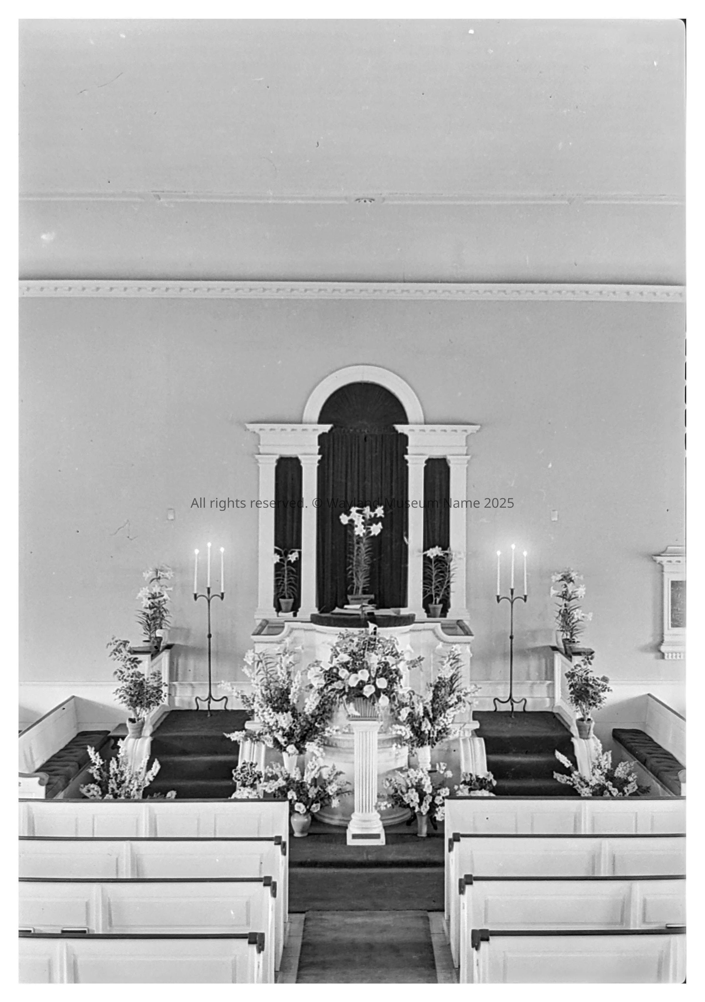 Folsom, Wallace Herbert, (1884 - 1954) –- Photographer First Parish Church -- Wayland, (Mass.) -- 1939 Unitarian Church -- Interior -- Wayland, (Mass.) Church -- Alter -- 1938 Alter -- Decorated EasterDimensions