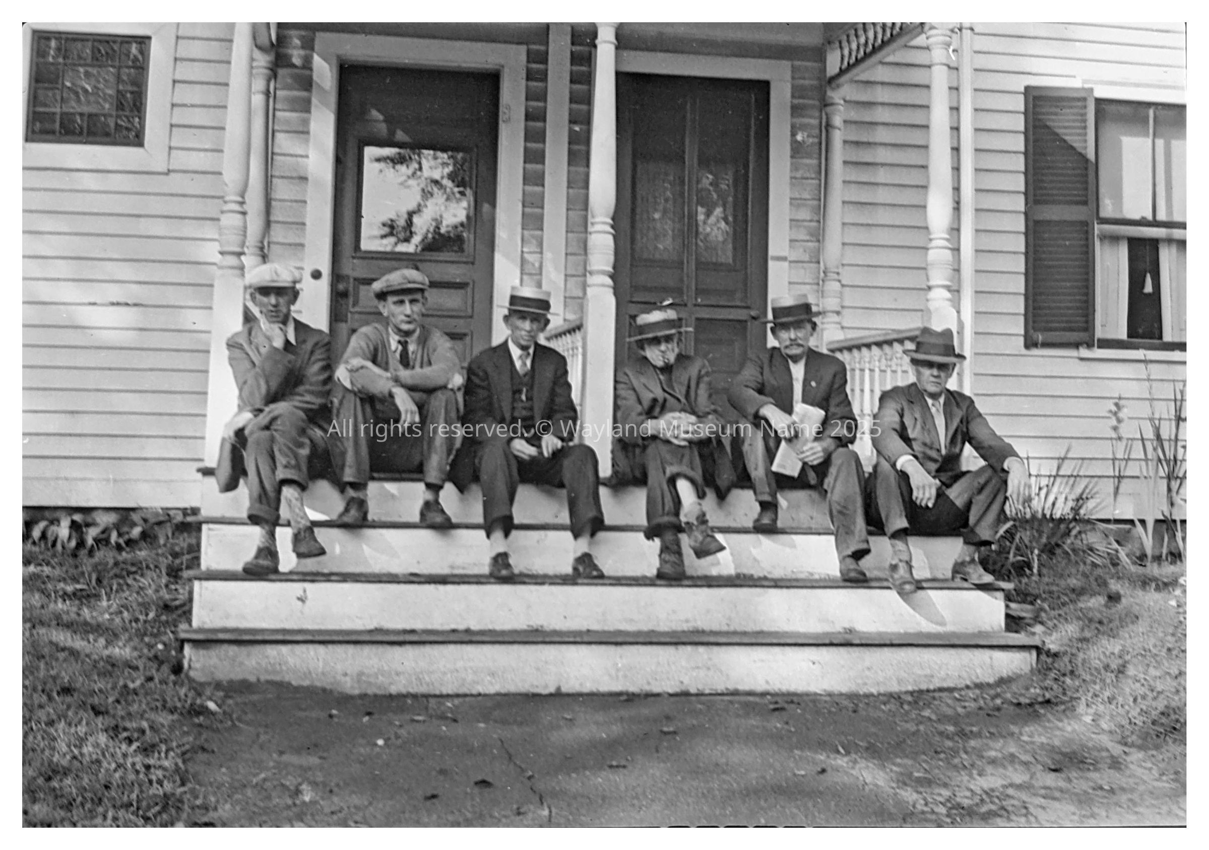 This double house was built as a residence and store by George Smith in about 1845. He ran a dry goods store here and in the 1860s added postal service as well. By about 1870 the double house was owned by Jeremiah Mullen (1821-1896). In the early 1900s, part of this house was used as the rectory for the Catholic priest. Later this double house was owned by Sophia Bennett Sears. During the 1920s Daniel Graham and his wife Hannah lived here and probably rented from the Bennetts. In 1946 Sophia Sears sold the double house to Thomas F. and Blanche C. McManus. n the 1940s Elizabeth Heard Russell had an antique store here. his trend of commercial use continued into the second half of the 20th century when there was a gift shop through the 1950s and 1960s, followed by a book store (Waybridge) in the 1970s and 1980s followed by another gift shop (Pei-Lin) after 1987. Medical offices now occupy the building.Photograph Details