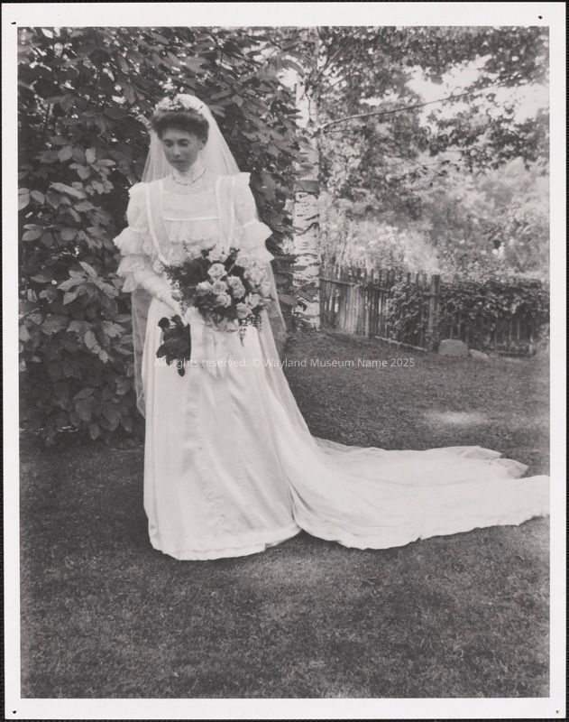 Marian Buckingham Sears in wedding dress at marriage to Francis Bacon Sears II in 1906.