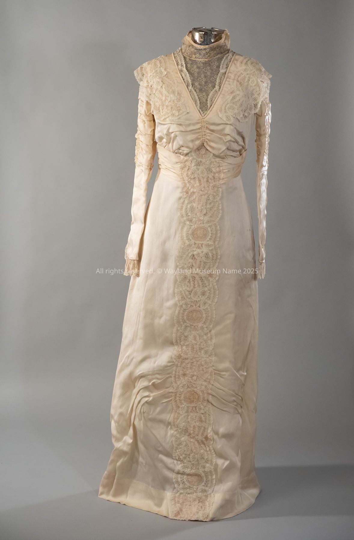 Wedding dress of Beatrice DeCharmes Bell, married Archie W. Bell, Nov.30, 1912, Cincinnati, Ohio.
