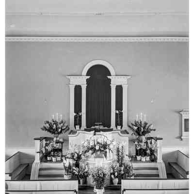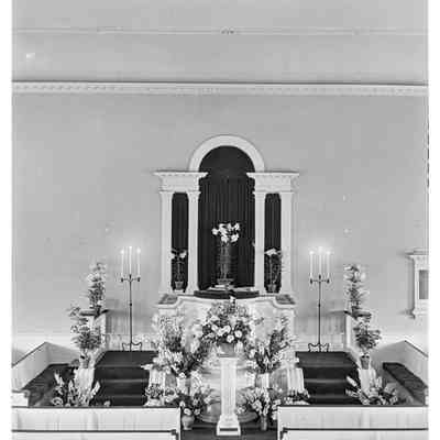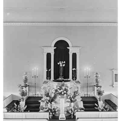 First Parish Church, interior, pulpit, Easter 1939