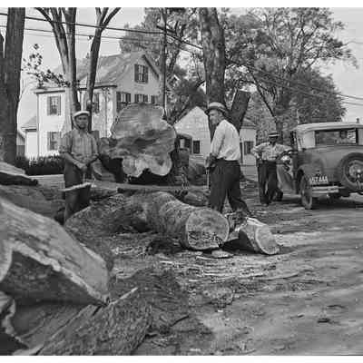 Removing tree at the “heater piece” (west end of Village Green)