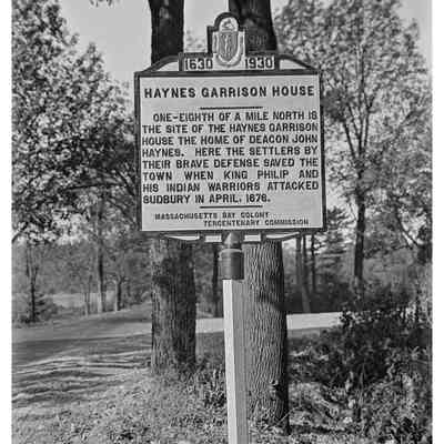 Old Sudbury Road & sign for Haynes Garrison house site marker