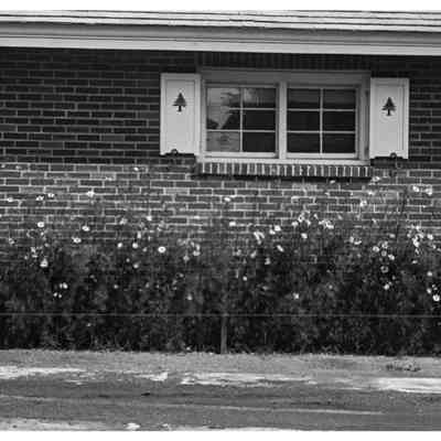 Flowers by the telephone office, Boston Post Road, next to Mobil Service Station