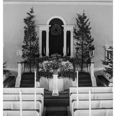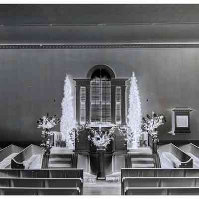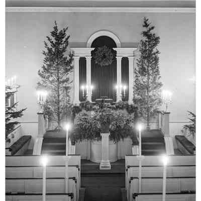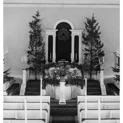 First Parish Church, interior, pulpit, Christmas 1938