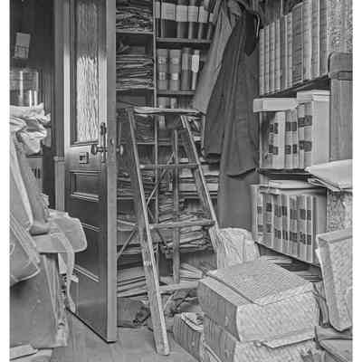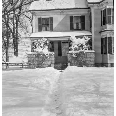 Side door & snow, probably Folsom house, Old Sudbury Road