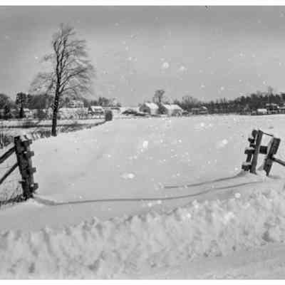 Parmenter’s pasture in snow, from Old Sudbury Road, towards barns on Bow Road