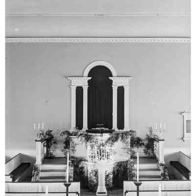 First Parish Church, interior pulpit 1938
