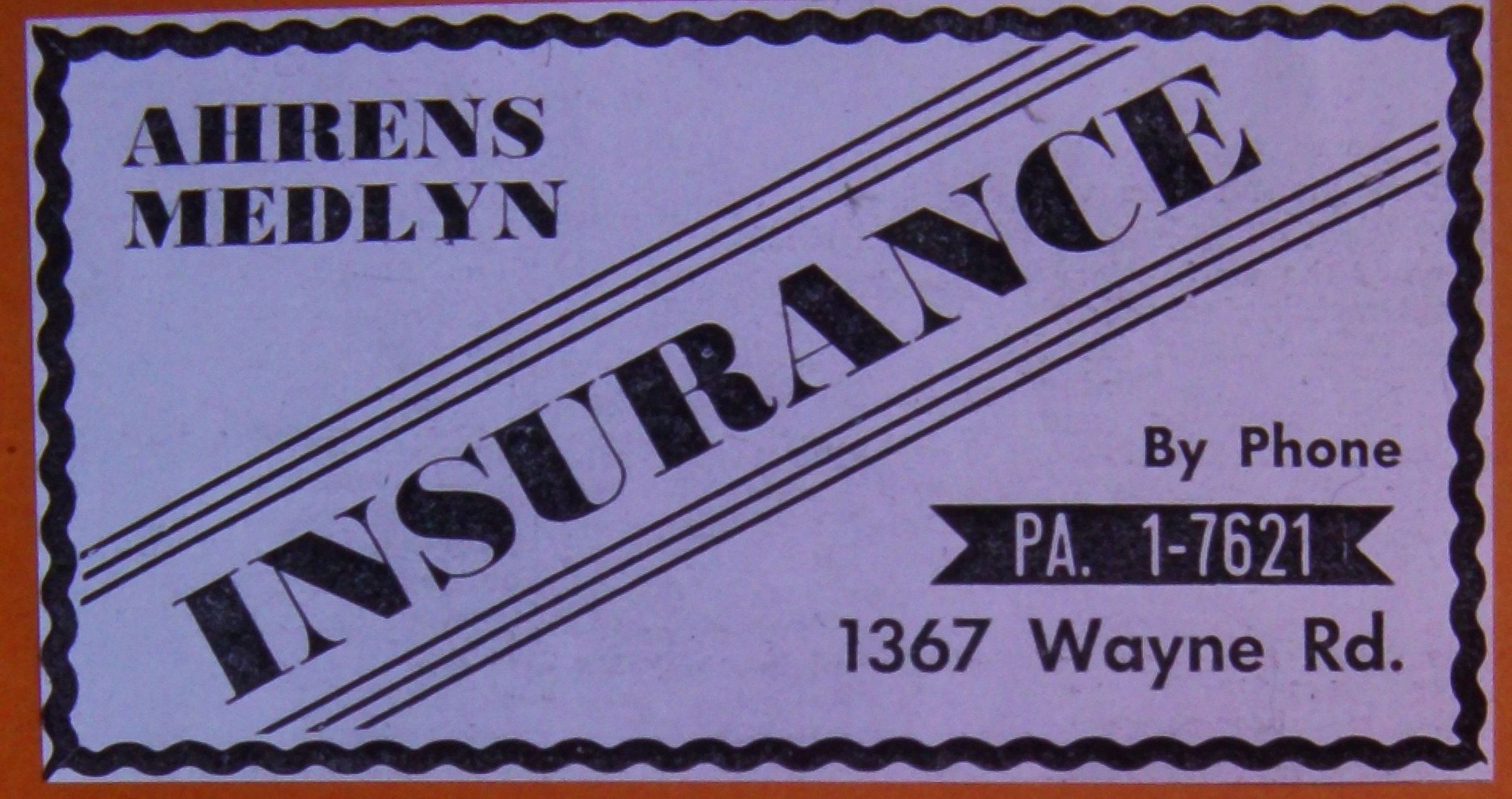 1367 Wayne Road - Ahrens Medlyn Insurance. 1961 Ad