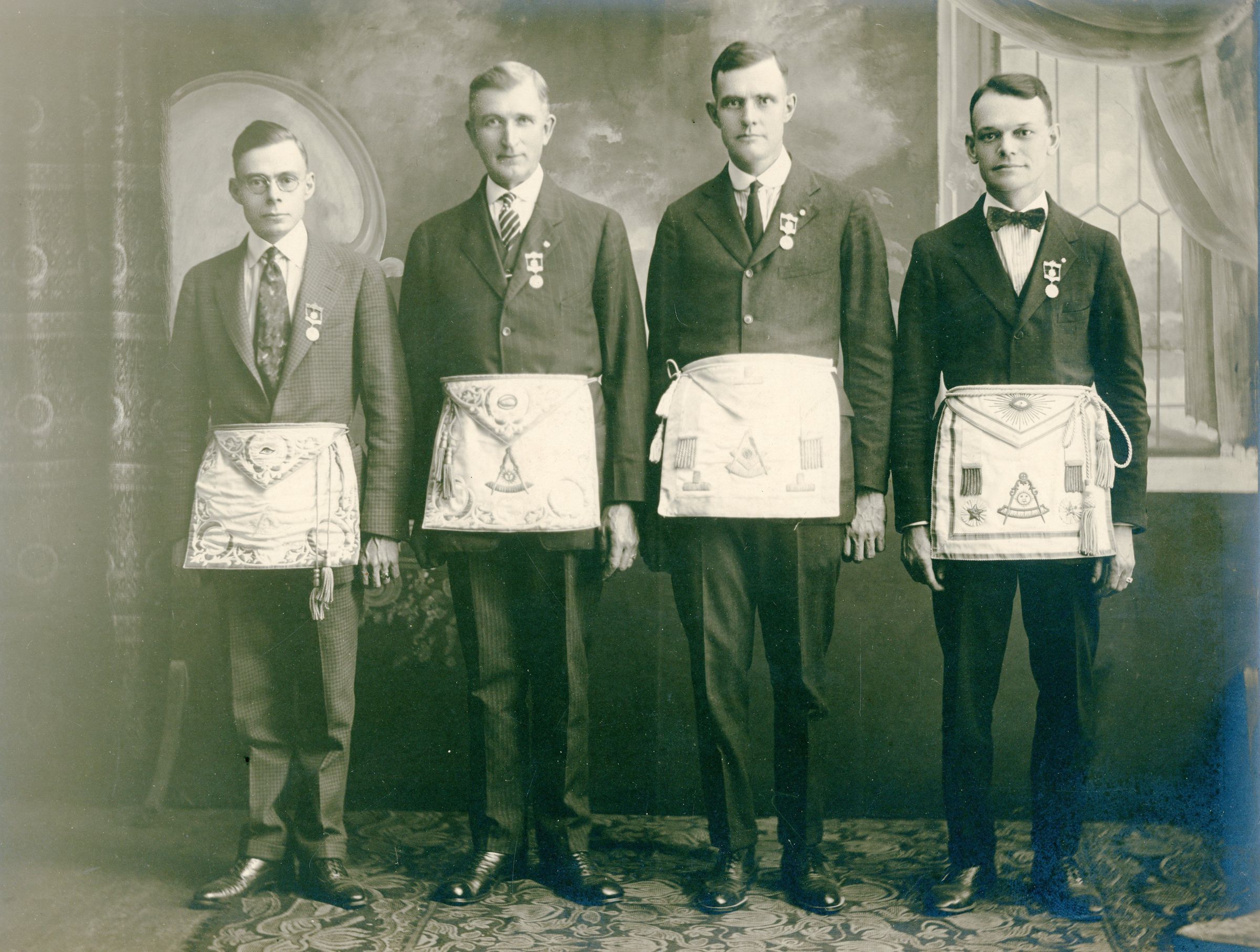 L-R: Matthew W. Tinkham, unknown, Marten Fisher, Charles English