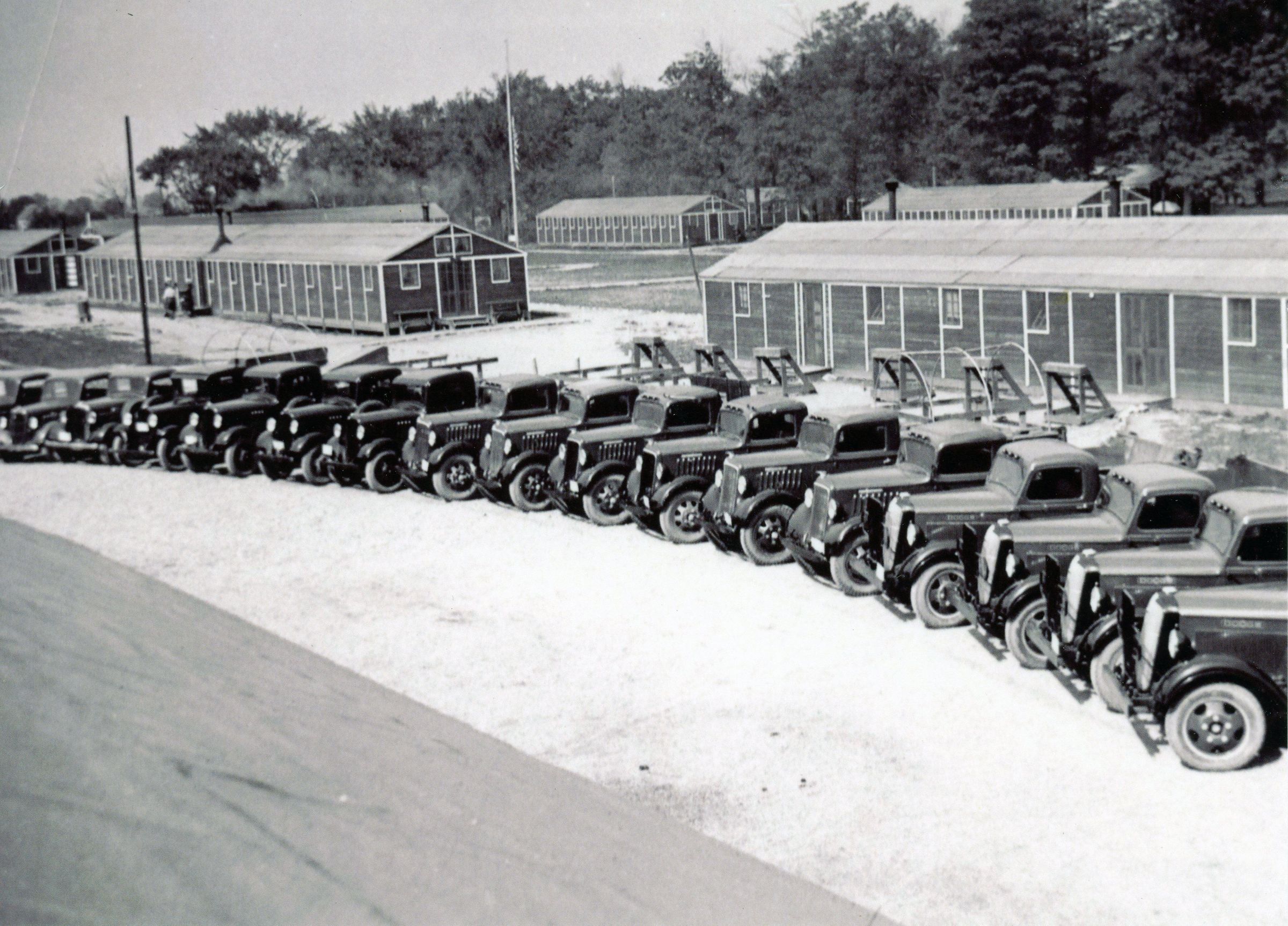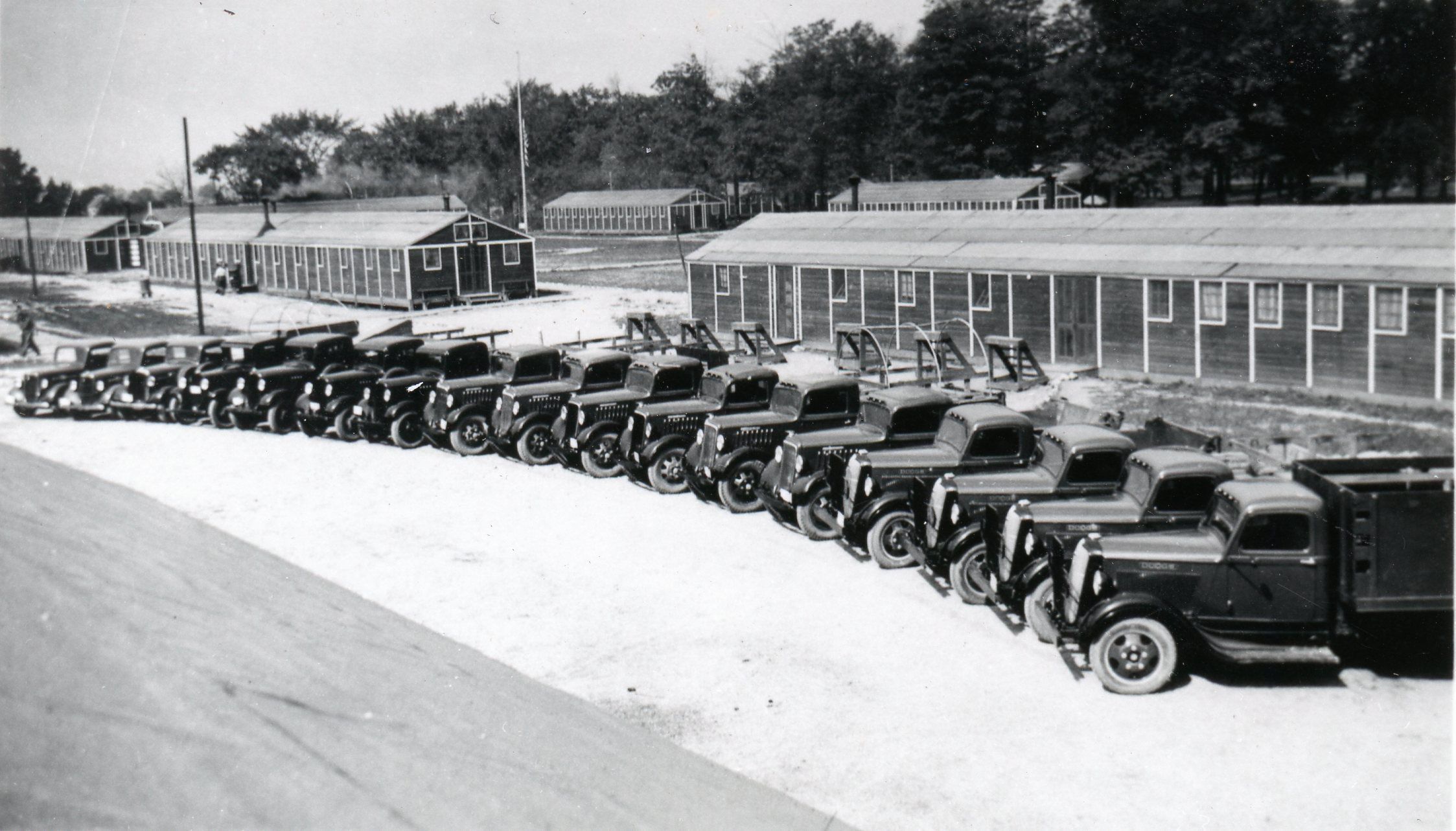 Civilian Conservation Corps. Camp Barracks and Trucks