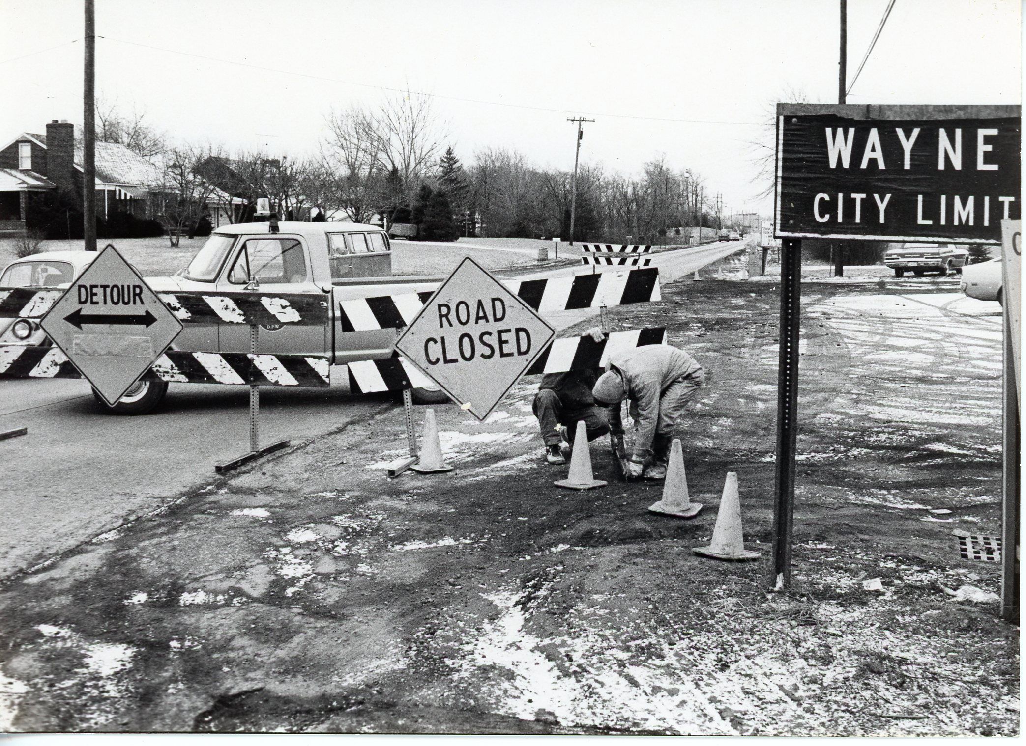 Newburgh Road Closed on March 4, 1971. Photo is at Newburgh Rd looking South. Photo taken by Lothar E. Konietzko.