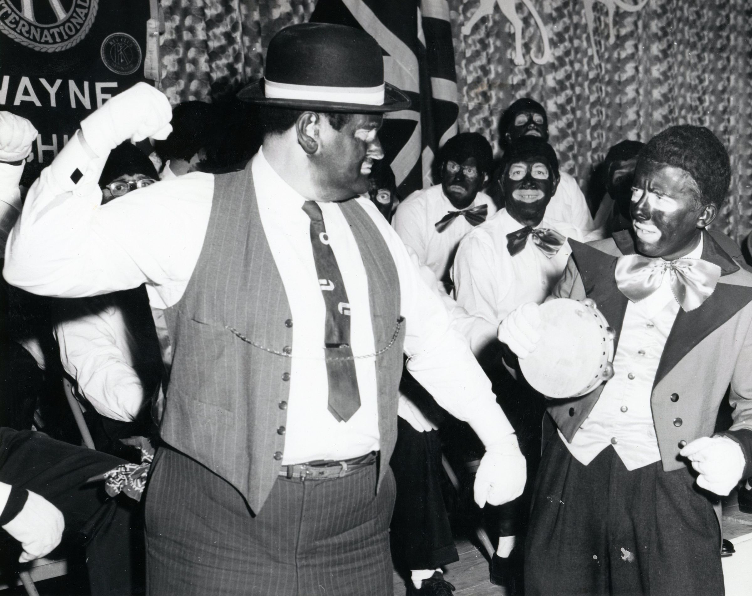 Kiwanis Skit, members in blackface. The Kiwanis Club did minstrel shows in the early and mid 1950s. *Not appropriate for todays taste, but photo is kept as historical record of things that actually did happen*Cataloged By
