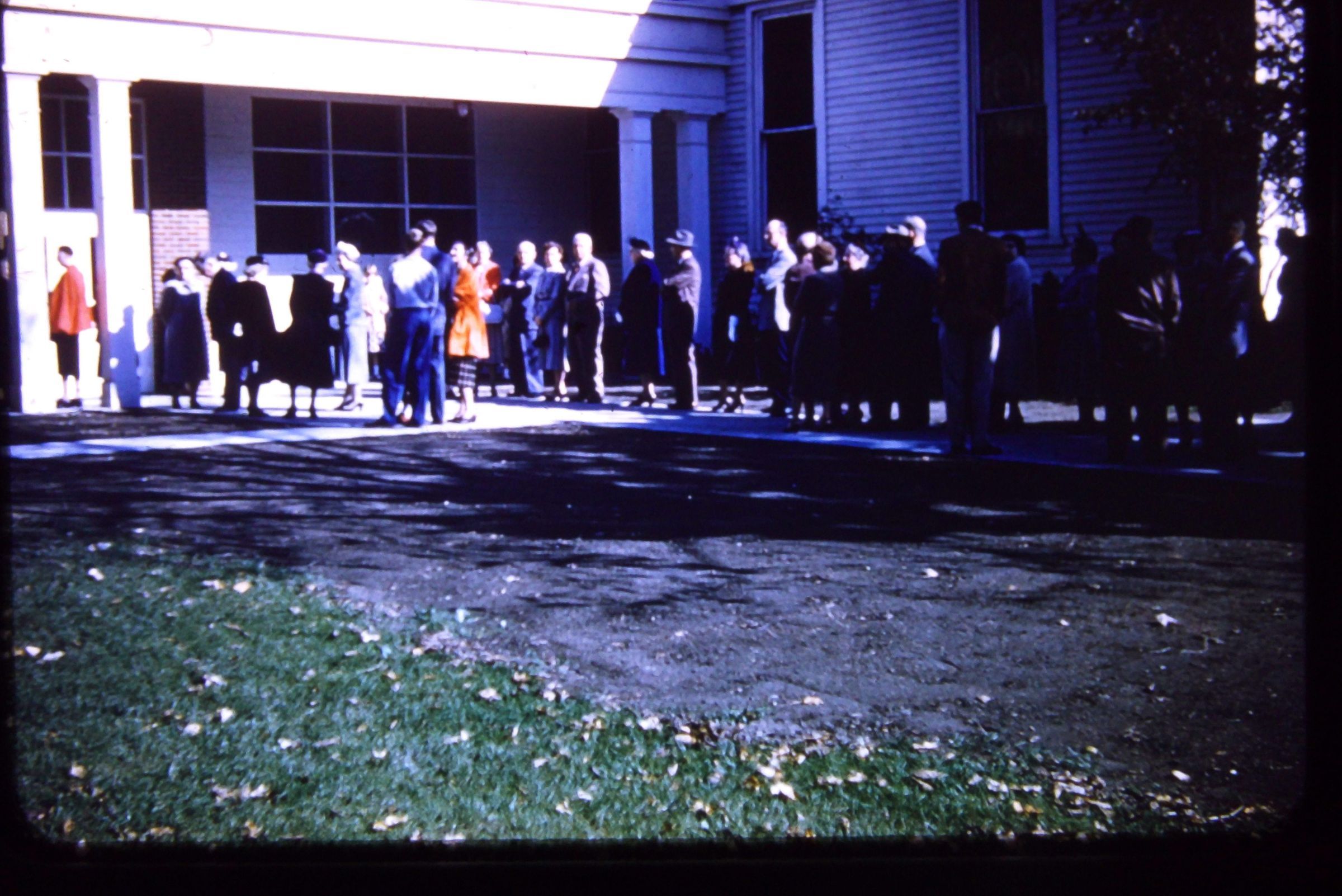 Unknown, line outside fellowship hall
