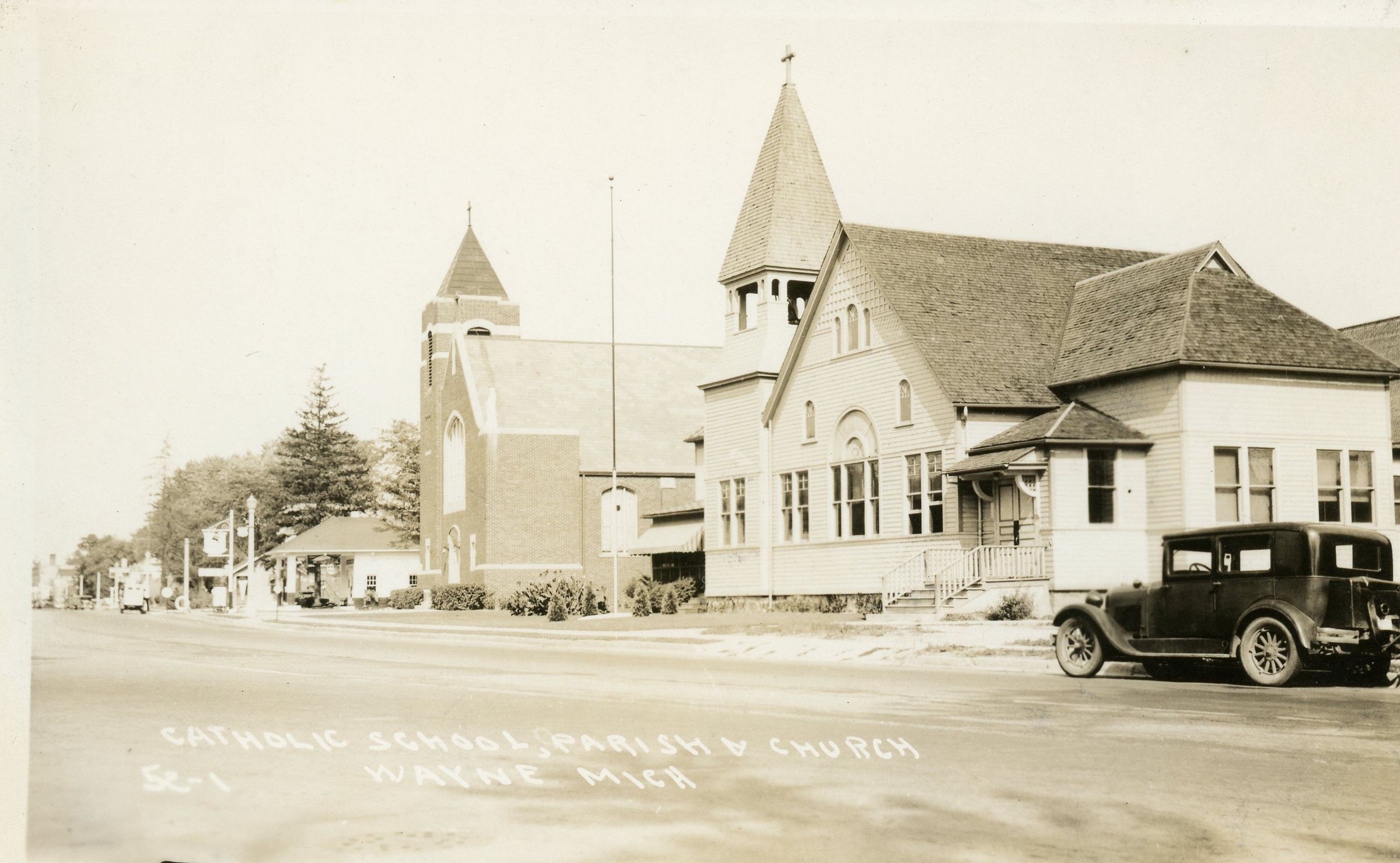 St. Marys Catholic Church, and old church, which was the first school. c. 1920s.