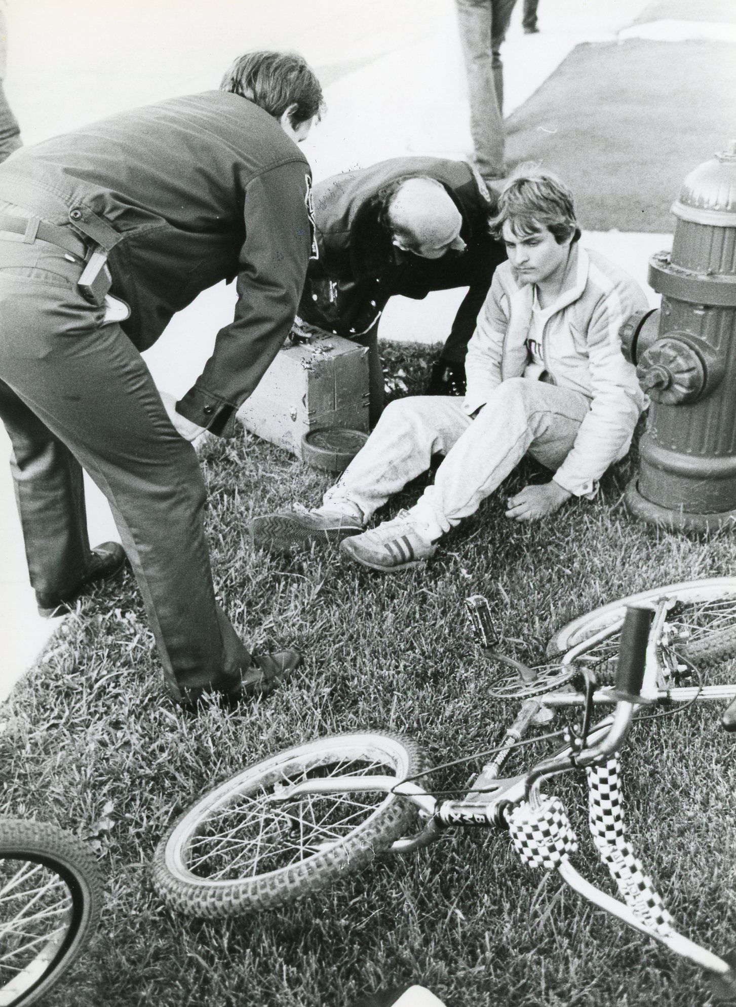Firefighters Moliton and Goodlow attending to a man on the ground