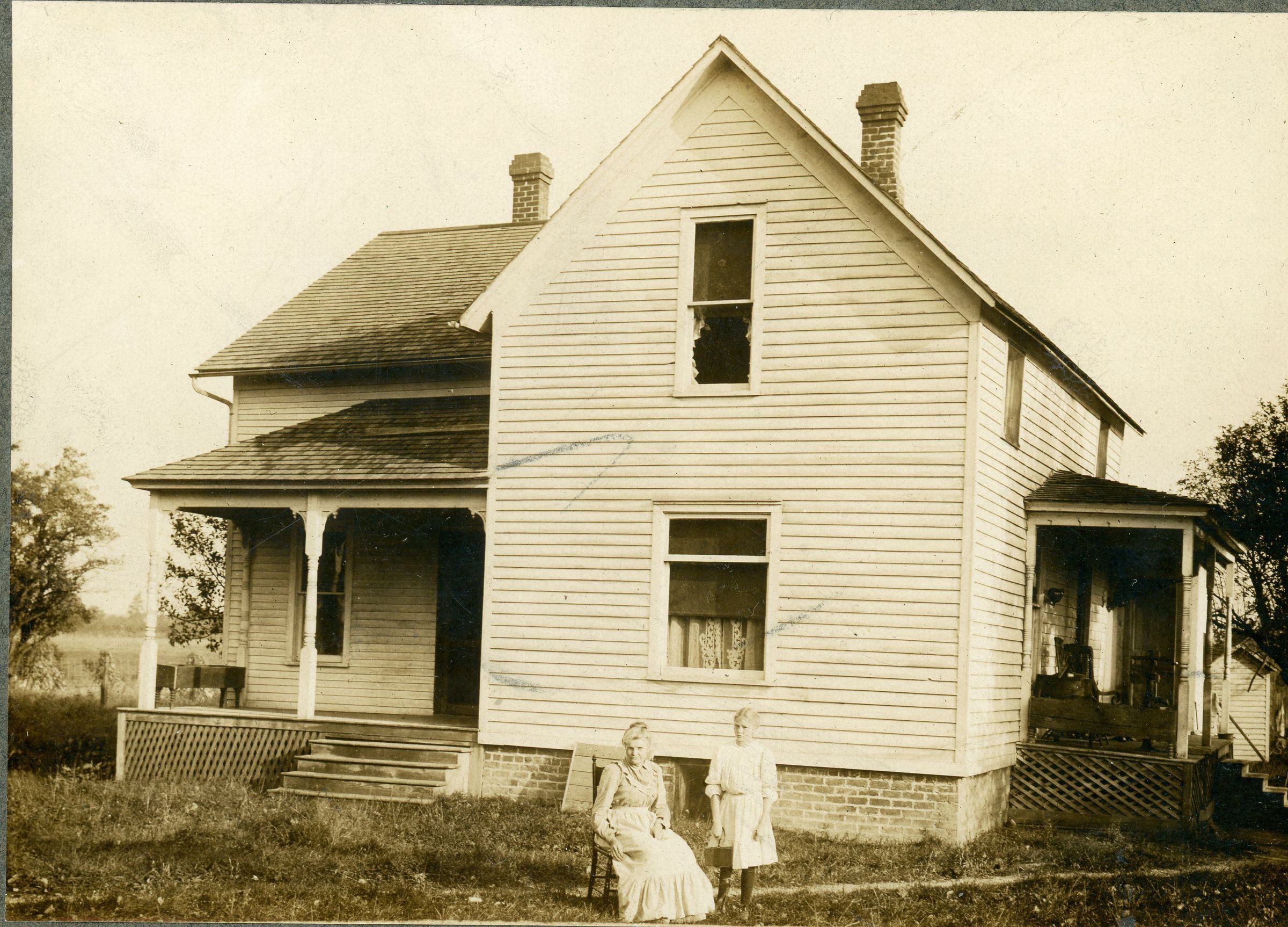 Wightman House. Sims street, North Side. Dear end of 4th street. Jennie Wightman seated in photo, lived there around 1916. City eventually bought house and demolished it to continue 4th street over river, but plans never happened.Cataloged By