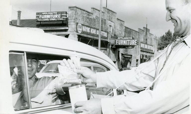 3518-3530 S. Wayne Road. West side. Building torn down to build city parking lot. formerly Moores Bowling Alley, Wayne home outfitters, Slot car track, ceramics store, Salvation Army storeCataloged By