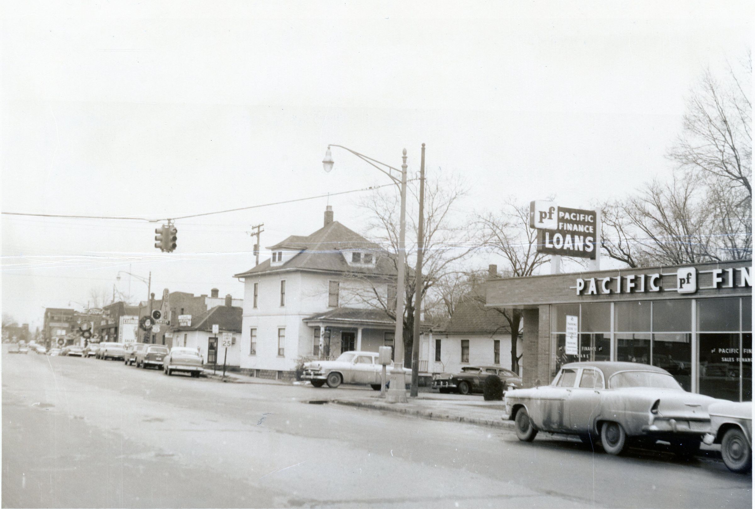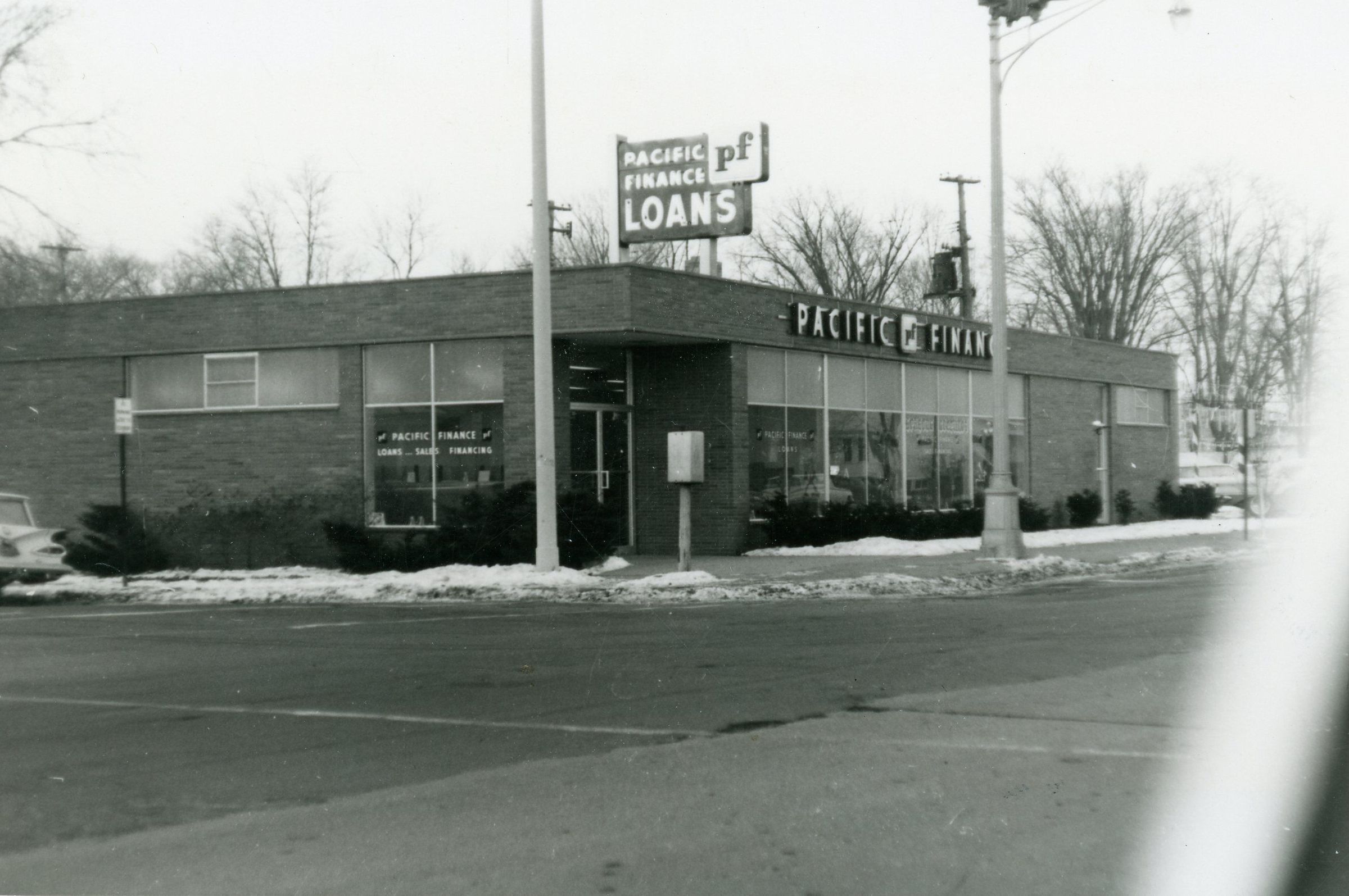 35501 Michigan - Pacific Finance. 1957. 1 story brick and concrete block commercial building. N 1/2 lots 11 & 12 Clark and Jamiesons Addn. Building still there as of 2024Cataloged By