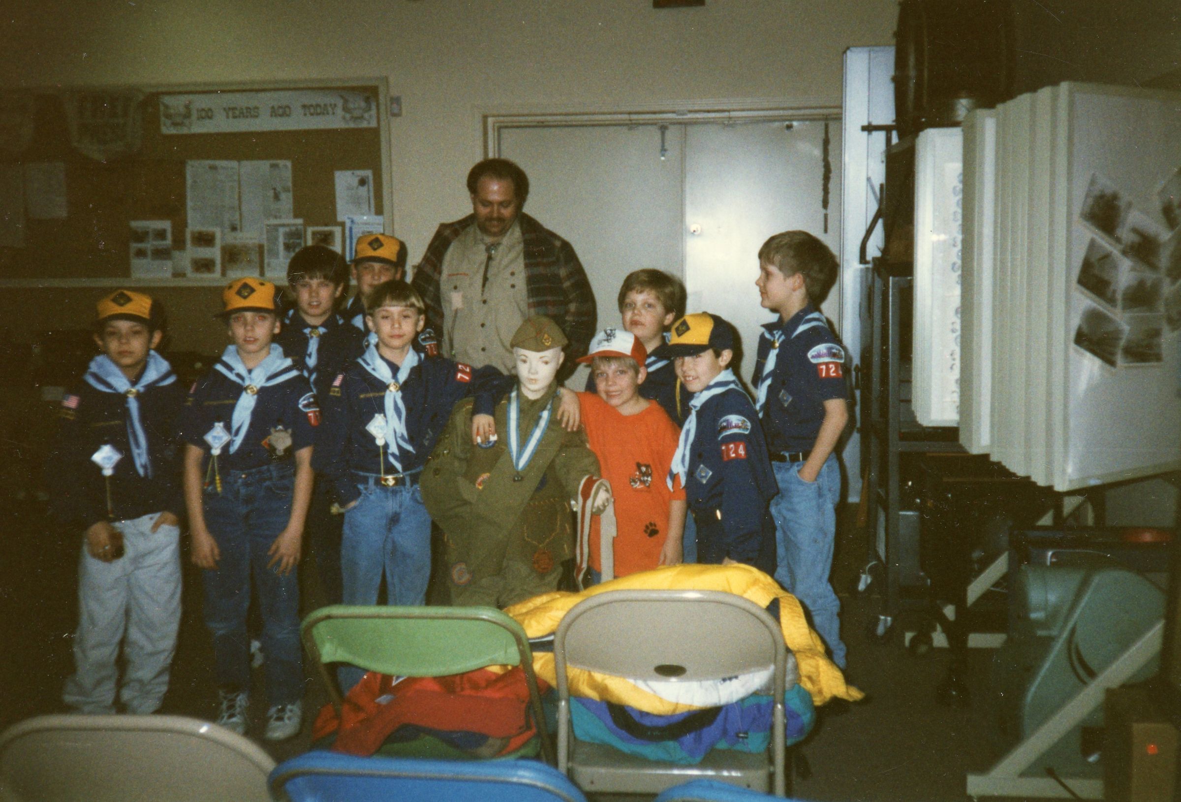 Bear Cub Scouts Pack 724 Front Row L to R: Julian Bermidez, Brian Susiwitz, Kyle Lehman, Justin Hall, Andrew Crawford. Back Row L to R: Chris Earnest, Eric Vojtkofsky, Den Leader Chuck Hall, Brandon Hall, Joe Riley.Cataloged By