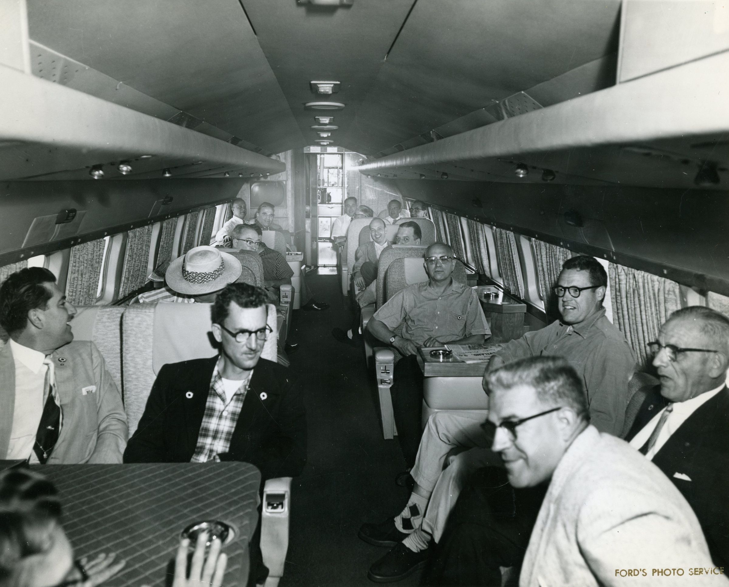 Rotary Club Members on Ford Company Jet in August of 1956. Photo taken by Ford Photo Service.