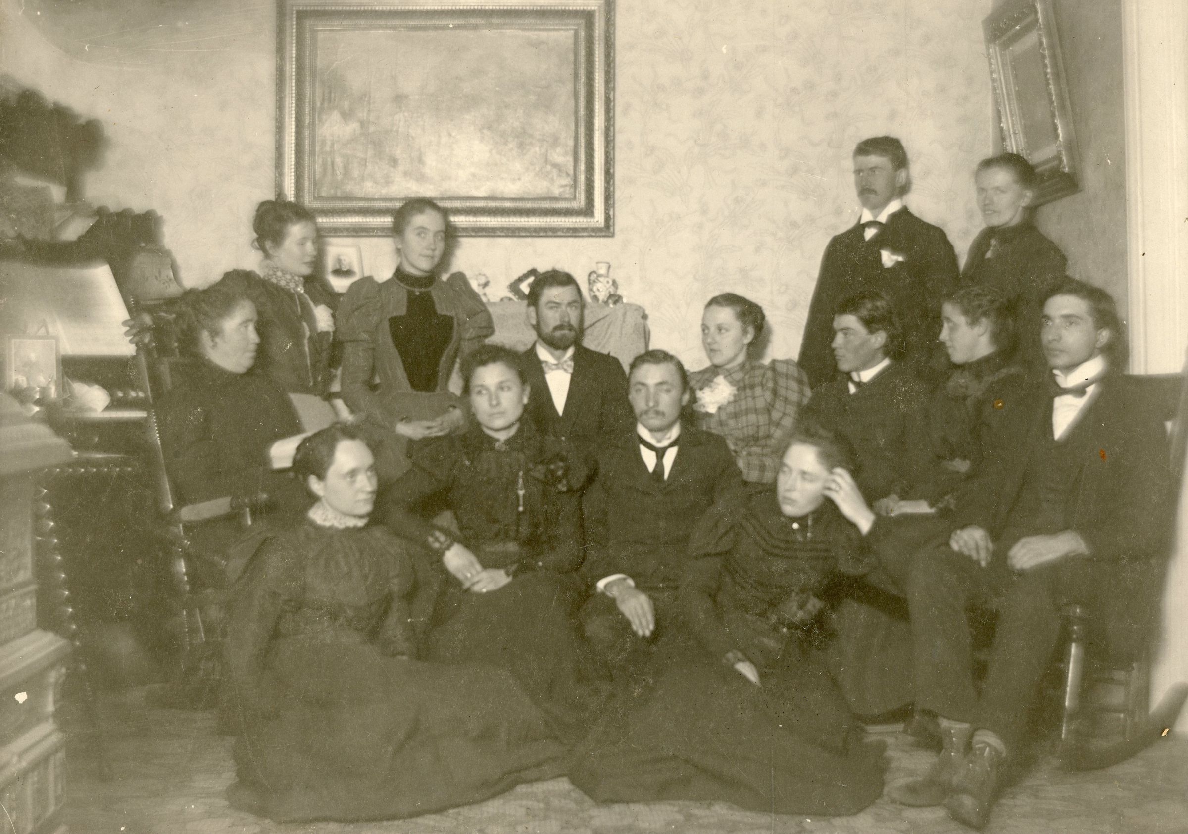 Mrs Sarah Coys Sunday School Class for the Methodist Church on Jan. 9,1899. Seated Row Left to Right; Mrs Alice Scarrow, Mrs. Grace McKinstry, John Avery, Fannie Raymo, John Ballou, Louise Avery and Frank Monroe. Standing behind in the far Right is Ralph Raymo and Mrs. Amy Kelly. Seated in front; Minnie Windsor, Miss Lillie Lee, Will Fowler and Pearl Heywood.Cataloged By