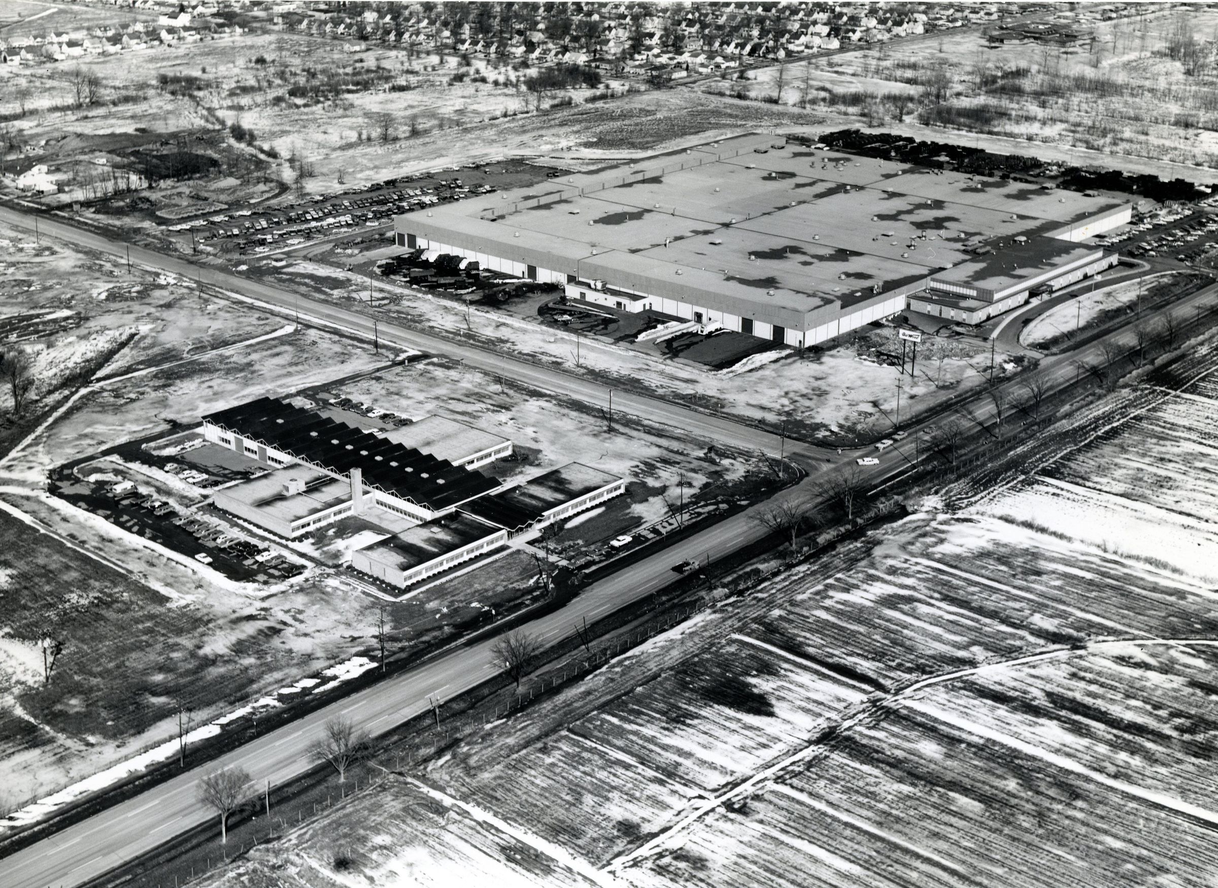 Aerial shot of Venoy and VanBorn. Wayne County Library and Gar Wood visibleDescription
