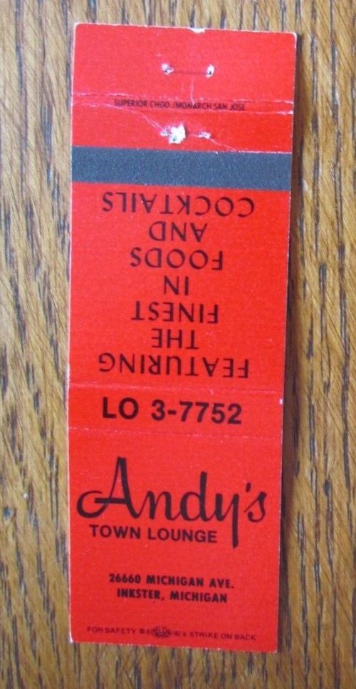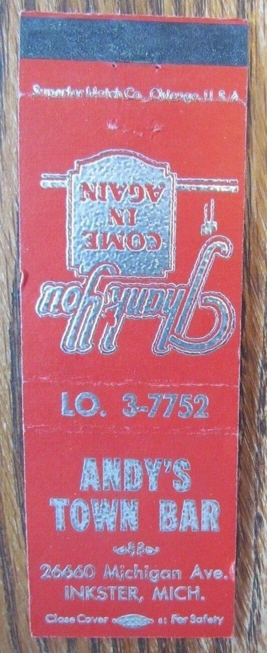 26660 Michigan - Andys Town Lounge Bar Matchbook Cover. Digital Only