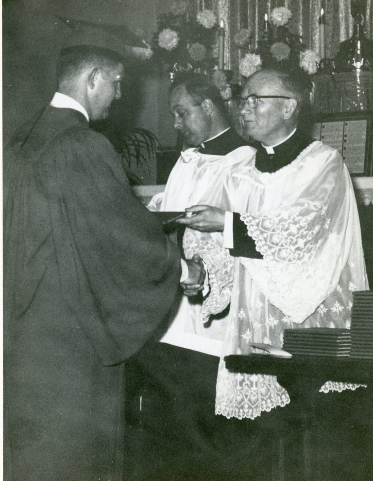 High School Graduation 6-11-1958. Fred Brown, Father Kreft, Father Haney
