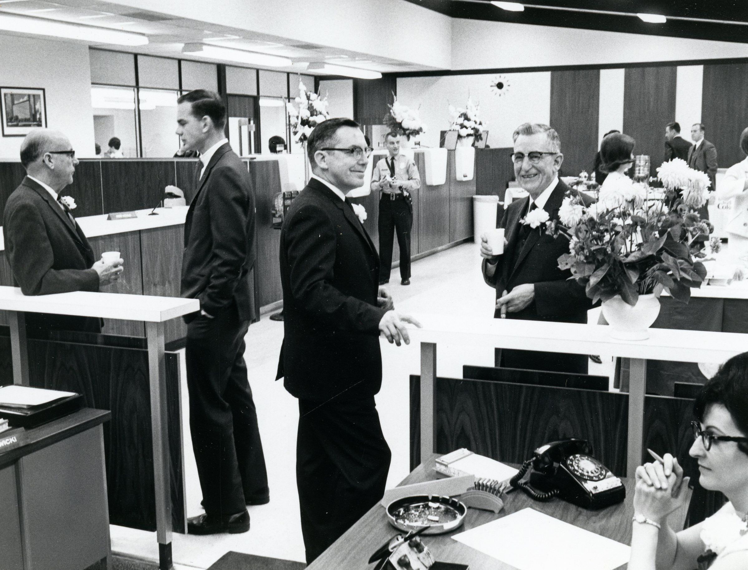 Inside the National Bank of Detroit. Photo taken in Feb 11,1966 by Nankin Eagle. Title of photo may be "Guest's".