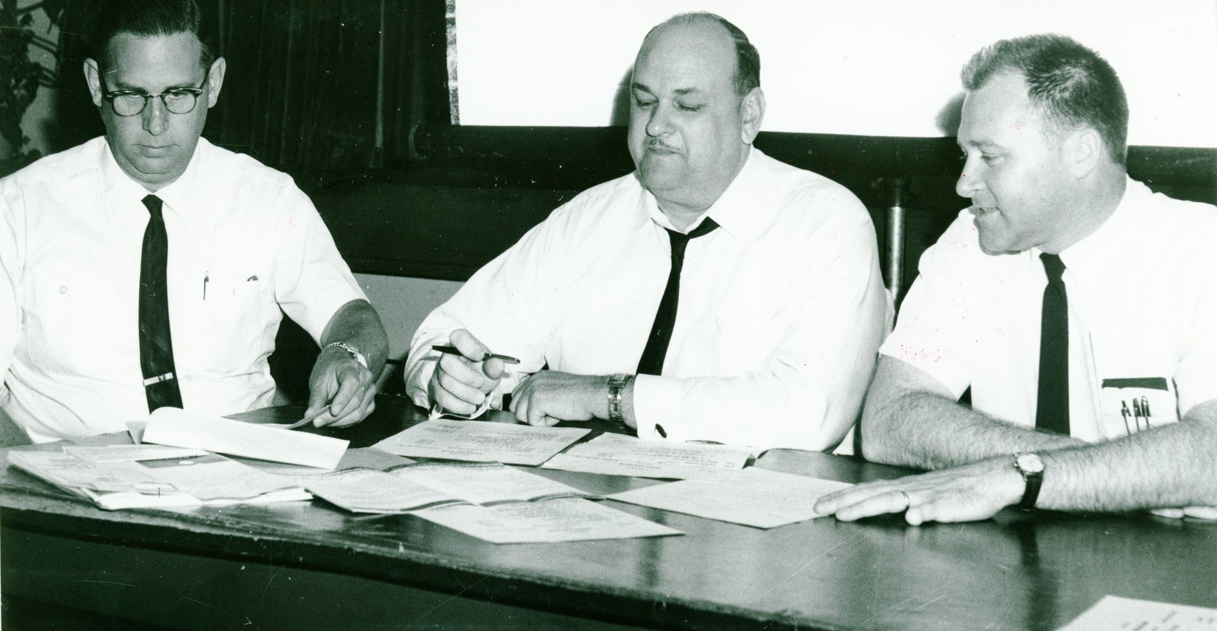 Members ?, Clarence Woolf and Robert Ecklund planning YMCA Kickoff