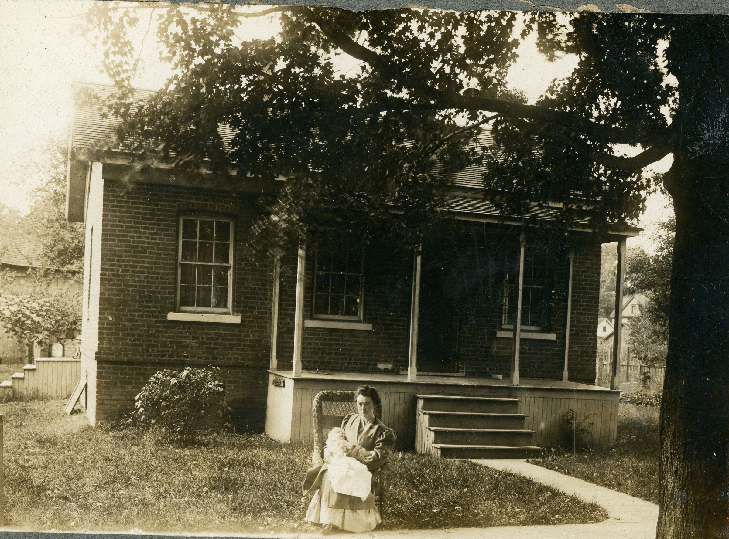 34815 Michigan - Whise House, supposedly built 1876. 2nd house from SW corner Michigan and 2nd. St., south side. Later Dr. Kominars Dentist office. Torn down for Urban Renewal. Pictured is Leora Elizabeth (Snyder) Whise, and Bernadette Whise. 1907. Former Stringer home, former Scheibel home.Cataloged By