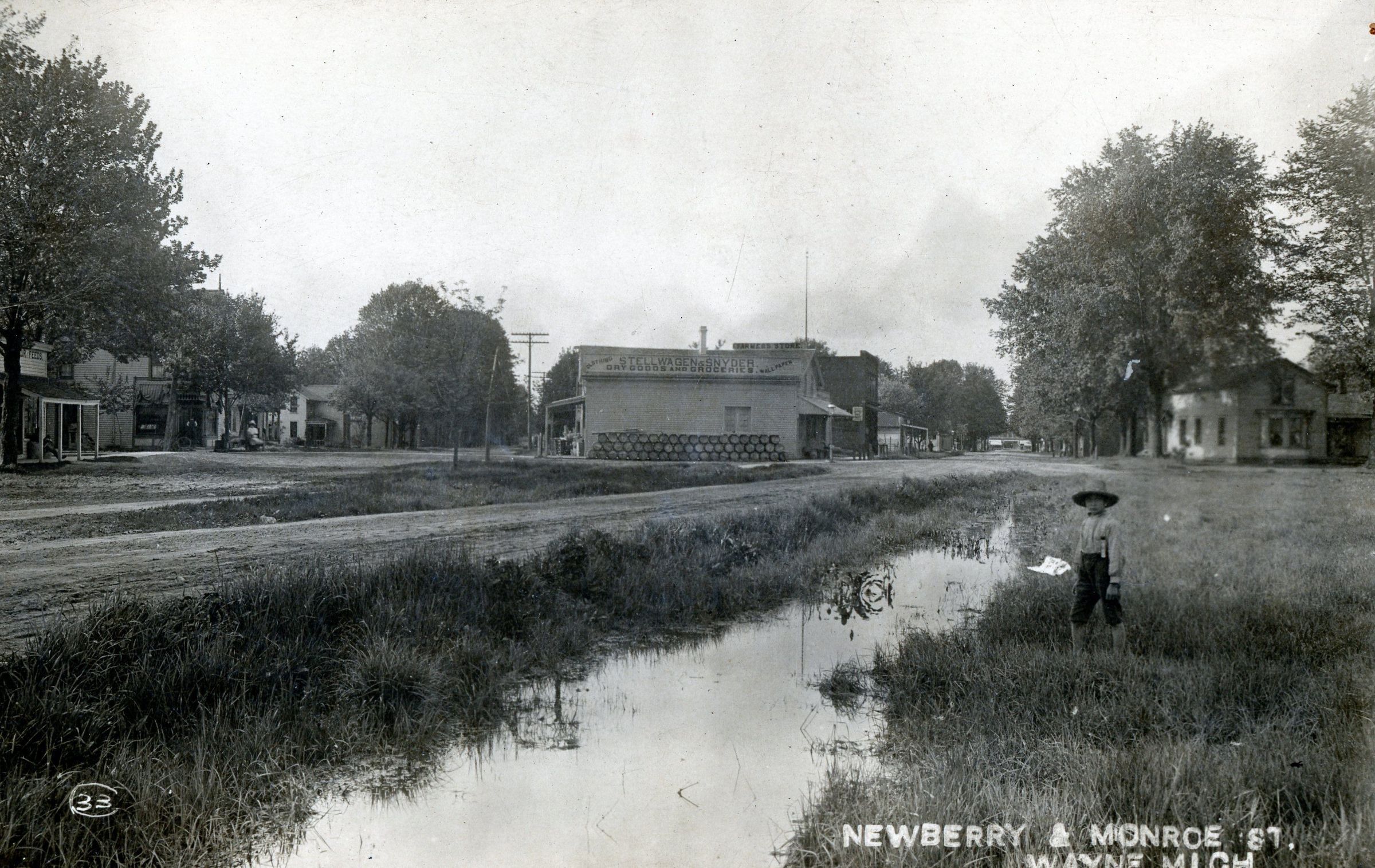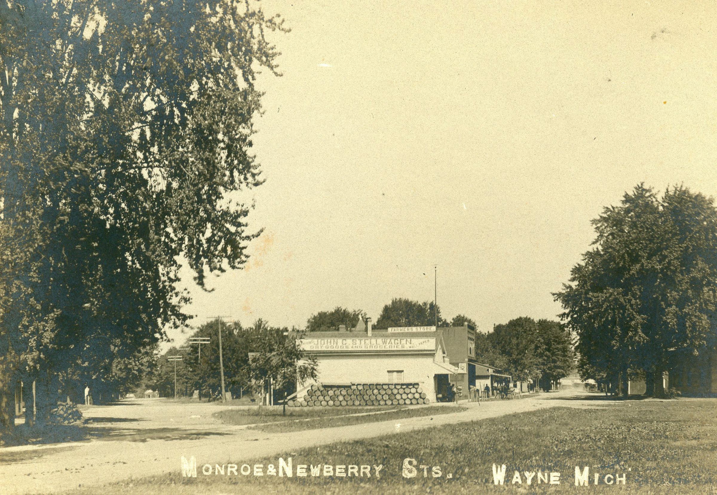 Looking North up Newberry and Monroe from RR Tracks. Stellwagen store in center