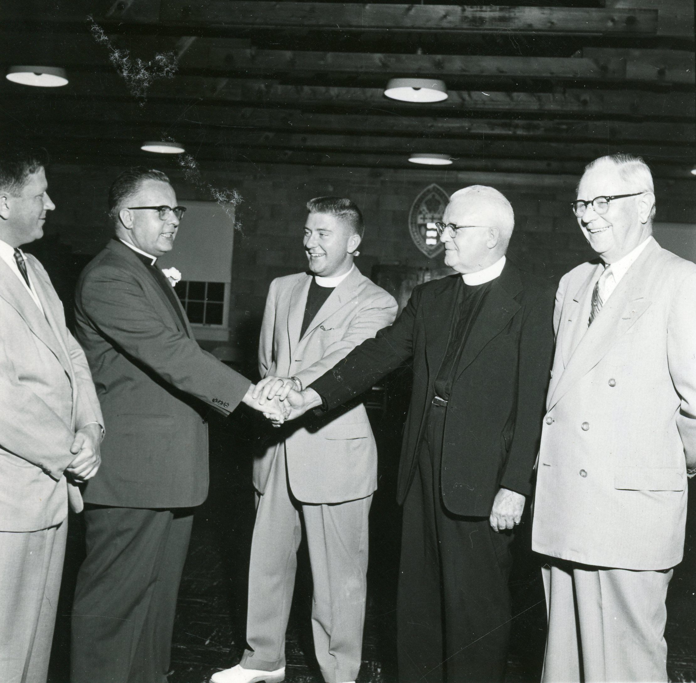 St. Johns Episcopal Church. Al Fogdrty, Rev. Smith, Carl Sayers, David Davis, Mantous Uht.