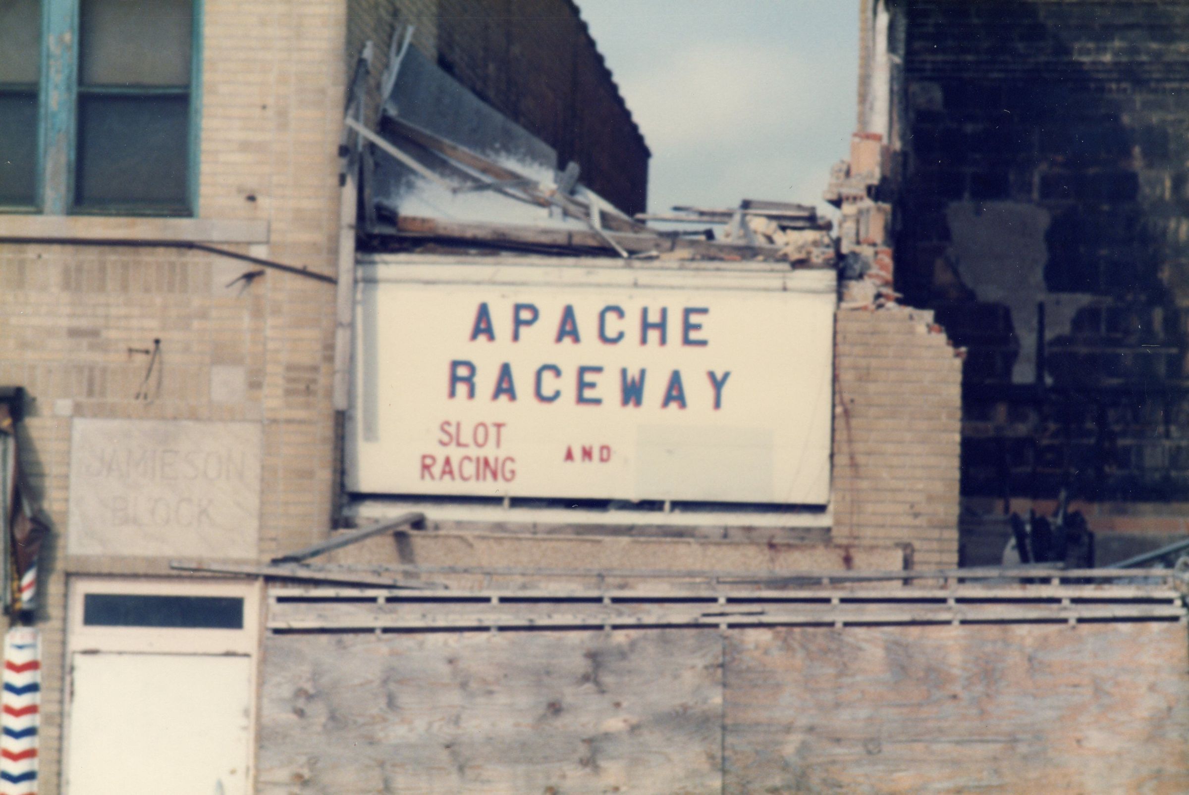 Apache Raceway in basement of Schafer building after fire near the Jamison Block.