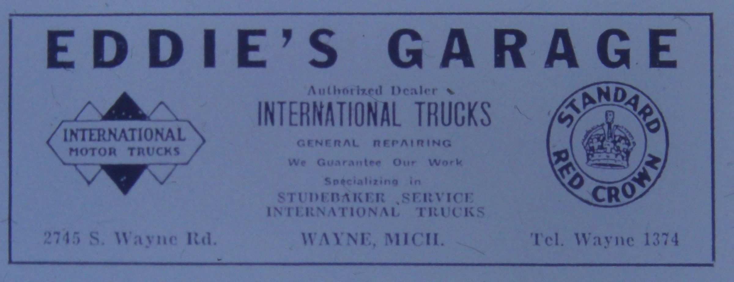 2745 S. Wayne Road - Eddies Garage. International Trucks, Studebaker service.