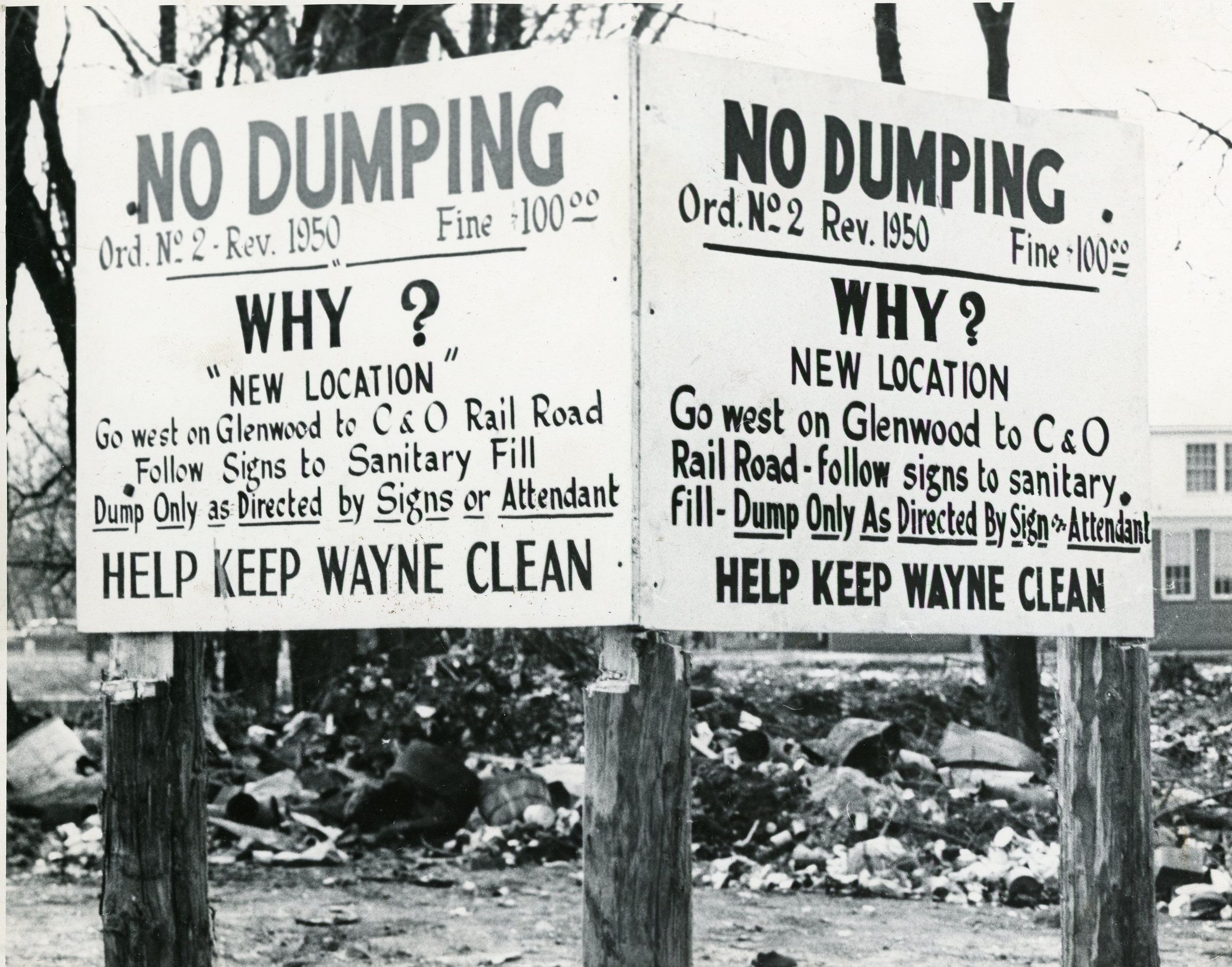 Ord. No. 2 Rev. 1950 New Sanitary Fill Dump. Wayne's new sanitary land fill on May 24, 1950. Site is on W. Glenwood at C.& O. Railroad.Cataloged By