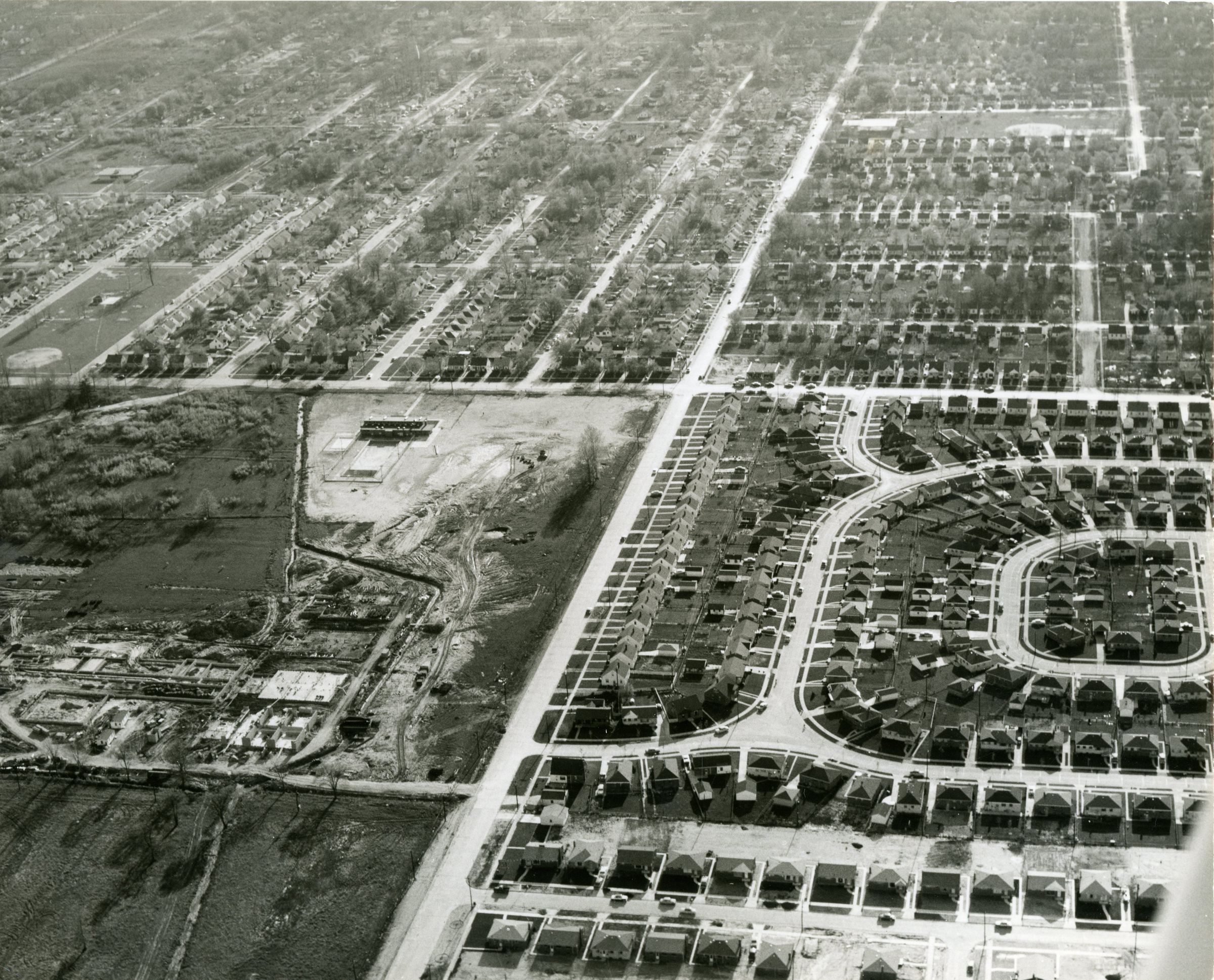 Annapolis and Howe roads looking West down Annapolis. Ben Franklin Jr. High under construction bottom left