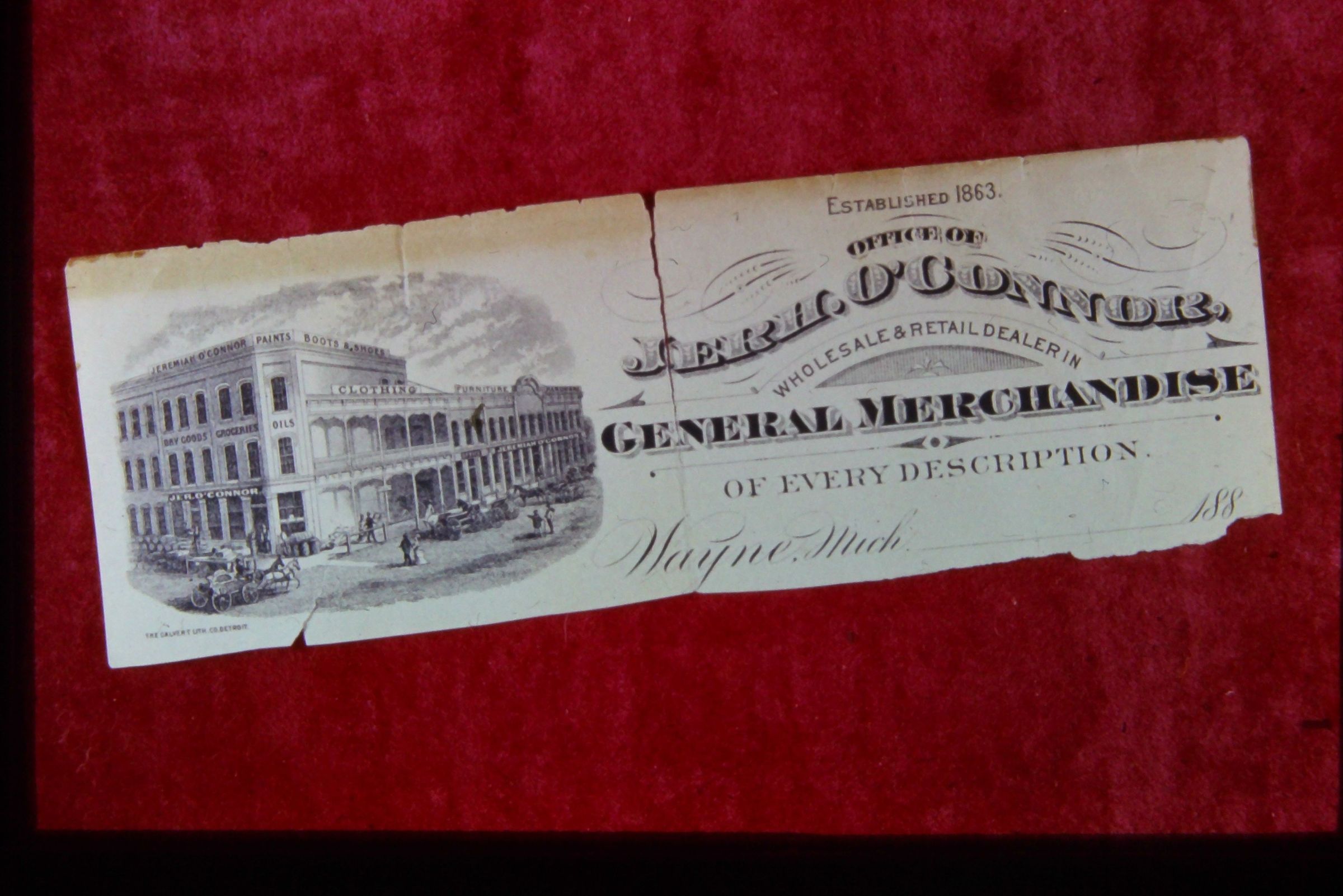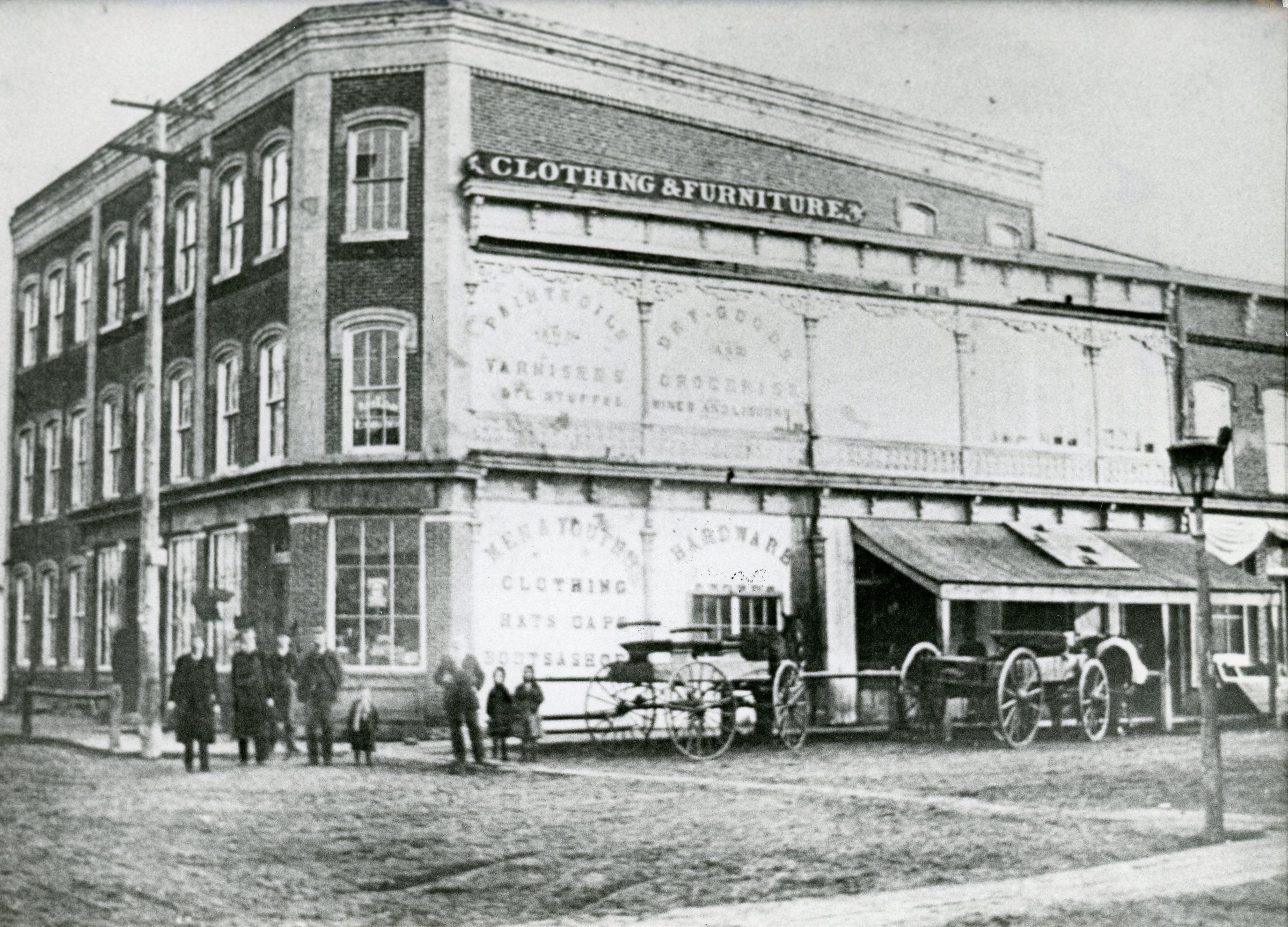 SE corner Michigan and Monroe - O'Connor Block. Built 1863 by Jeremiah O'Connor. Burned down 1888. Site later rebuilt and called Stringer Block, this burned down again 1908, rebuilt again as Fessler block.Cataloged By