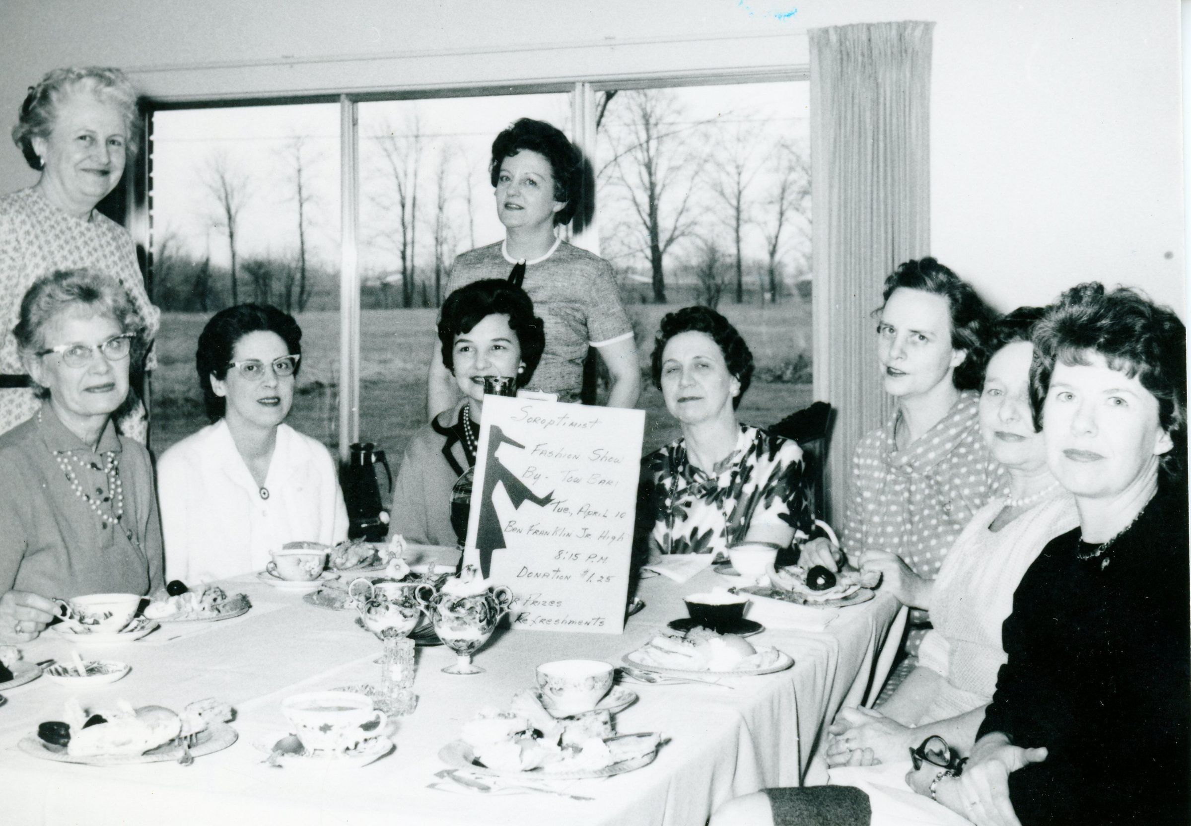 Soroptimist Fashion Show. Standing: Edna Herig, Maxine Wonysler. Sitting: Blanche Collins, Mary Surgenor, Vivian Robinson, Virginia Belutch, Becky Root, Virginia Marriott, Betty YoungCataloged By